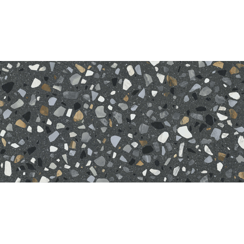 Deze tegel straalt stijl en elegantie uit dankzij het Terrazzo Grafite ontwerp. De diepe zwarte tint voegt een vleugje luxe toe aan elke ruimte. Of het nu wordt gebruikt voor vloeren of wanden, deze tegel creëert een verfijnde uitstraling die de ruimte transformeert. De subtiele glans en textuur van de tegel zorgen voor een unieke en tijdloze esthetiek die de aandacht trekt en indruk maakt.