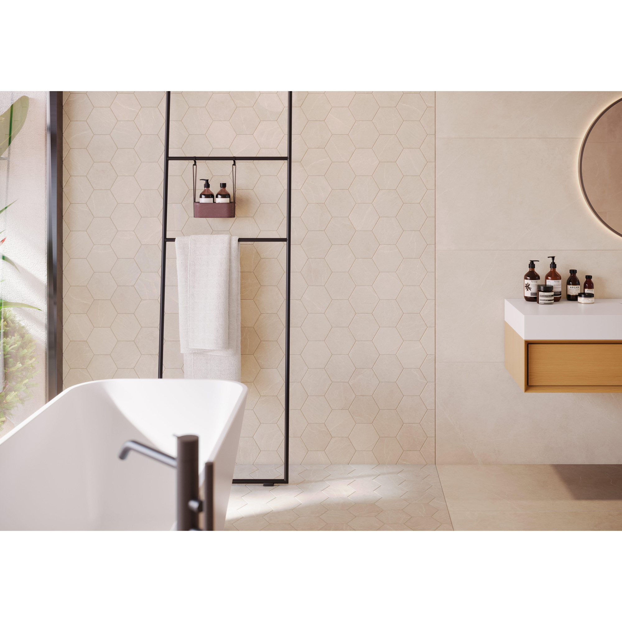 De SAMPLE Cifre Cerámica Statale vloer- en wandtegel Betonlook Sand mat (beige) is een prachtige tegel die een vleugje elegantie en moderniteit toevoegt aan elke ruimte. Met zijn betonlook in zandmat beige, straalt deze tegel een tijdloze schoonheid uit die perfect past bij zowel klassieke als eigentijdse interieurs. Of het nu voor vloeren of wanden is, deze tegel creëert een stijlvolle en verfijnde sfeer in badkamers, keukens of andere leefruimtes.