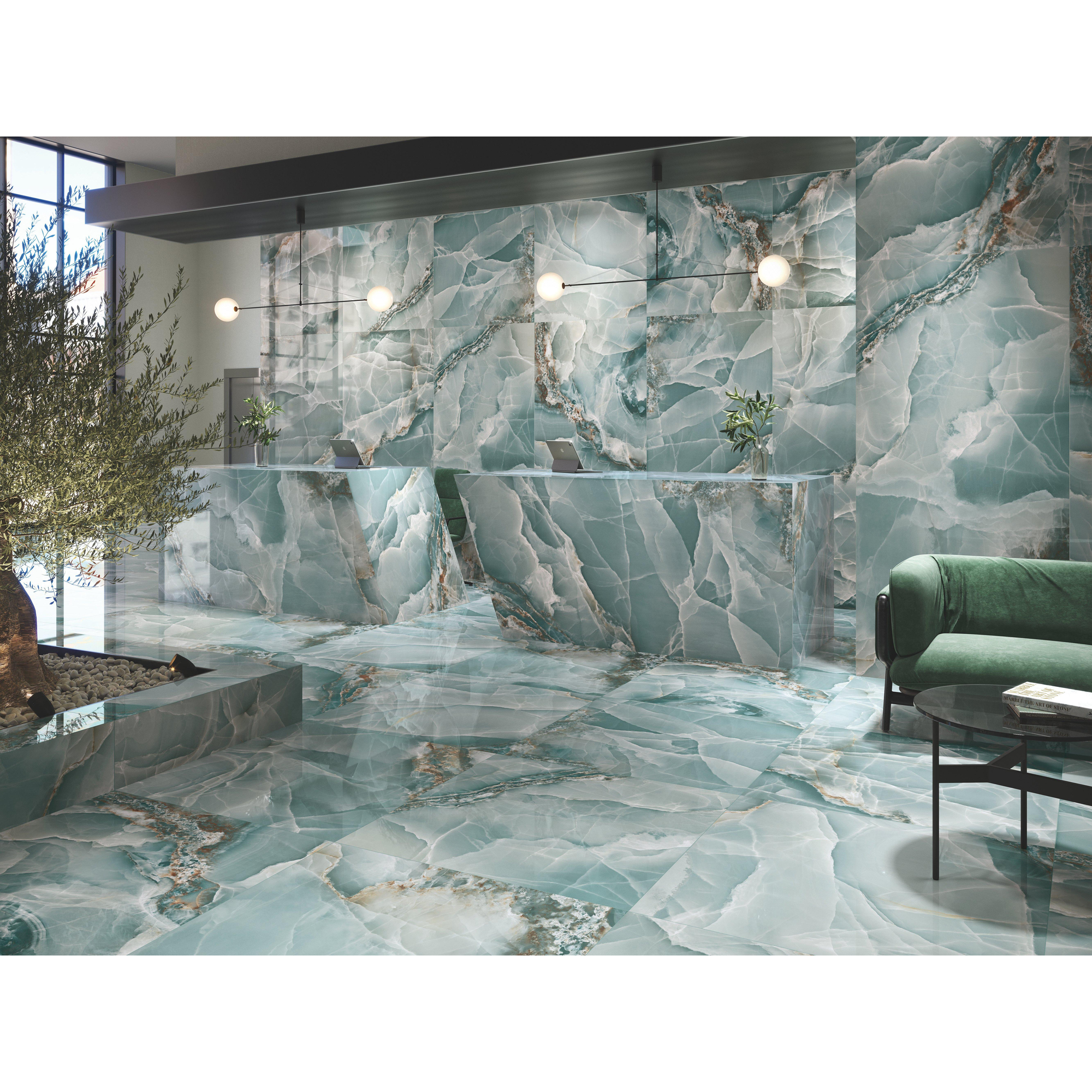 Ontdek de prachtige Baldocer Cerámica Onyx vloer- en wandtegel met een natuursteen look in een opvallende turquoise (groene) kleur. Deze tegel brengt een vleugje natuurlijke schoonheid en levendigheid in elke badkamer of keuken. Het unieke ontwerp combineert de duurzaamheid van keramiek met de verfijnde uitstraling van natuursteen, waardoor een elegante en stijlvolle sfeer wordt gecreëerd. Met zijn levendige kleur en natuurlijke textuur is deze tegel een ware blikvanger die elke ruimte transformeert tot een oase van rust en comfort.
