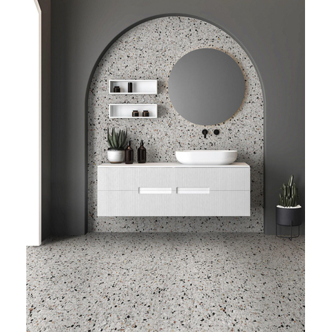 Ontdek de prachtige SAMPLE EnergieKer Medley vloer- en wandtegel Terrazzo Wit mat, een verfijnde toevoeging aan elke badkamer of keuken. Met zijn elegante ontwerp en duurzame materialen, brengt deze tegel een vleugje stijl en klasse in elke ruimte. De combinatie van de klassieke Terrazzo uitstraling en de moderne mat witte afwerking zorgt voor een tijdloze en chique uitstraling. Of je nu een renovatie plant of een nieuwe ruimte creëert, deze tegel is de perfecte keuze voor een luxueuze uitstraling.