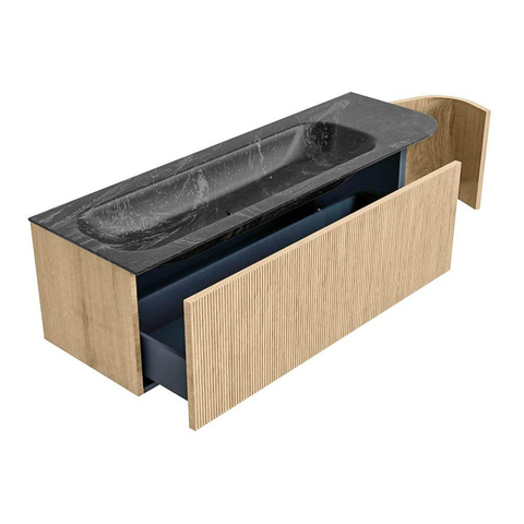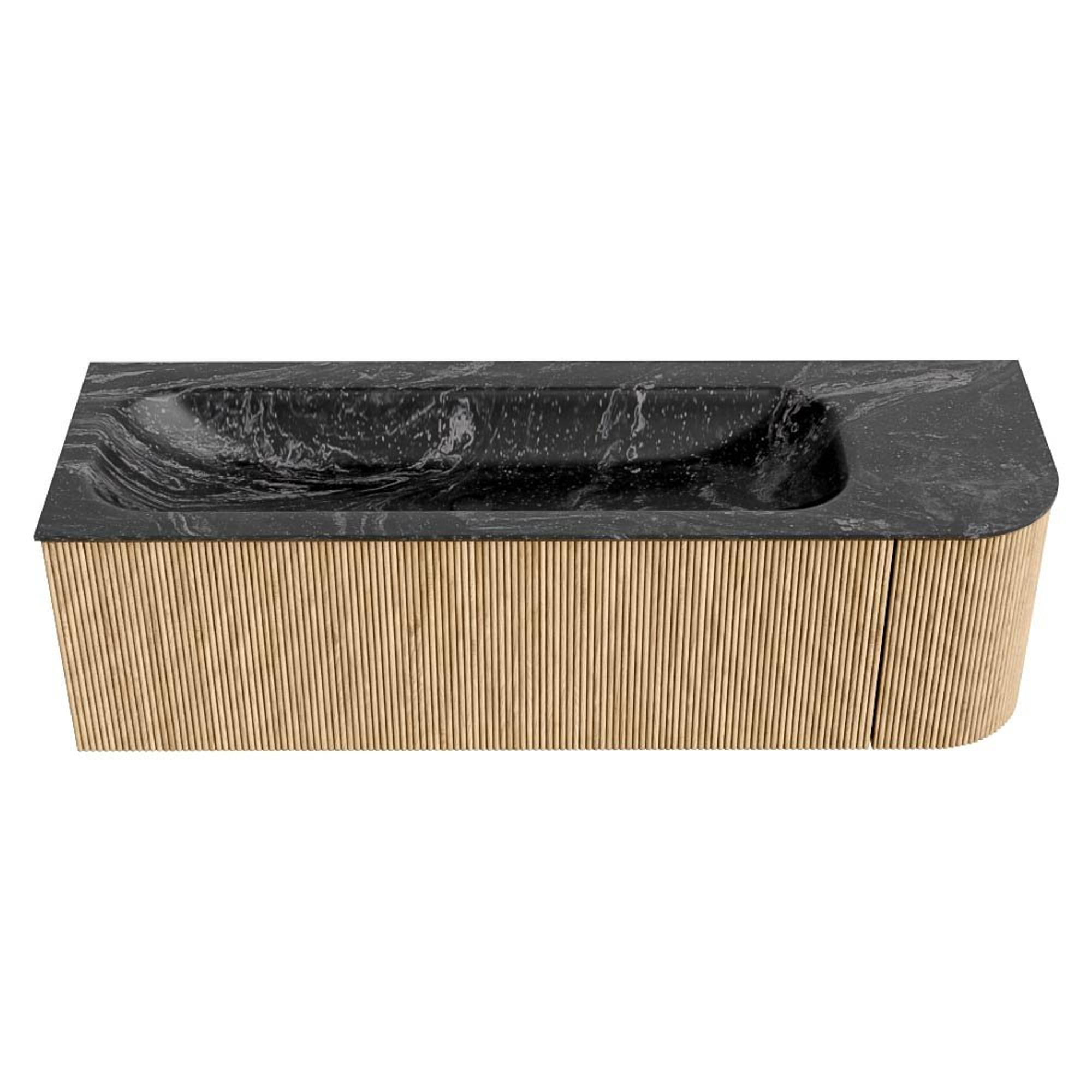MONDIAZ KURVE-DLUX 145cm badmeubel met module 25 R kleur Oak met 1 lade en 1 deur. Wastafel BIG LARGE links zonder kraangat kleur Lava.
