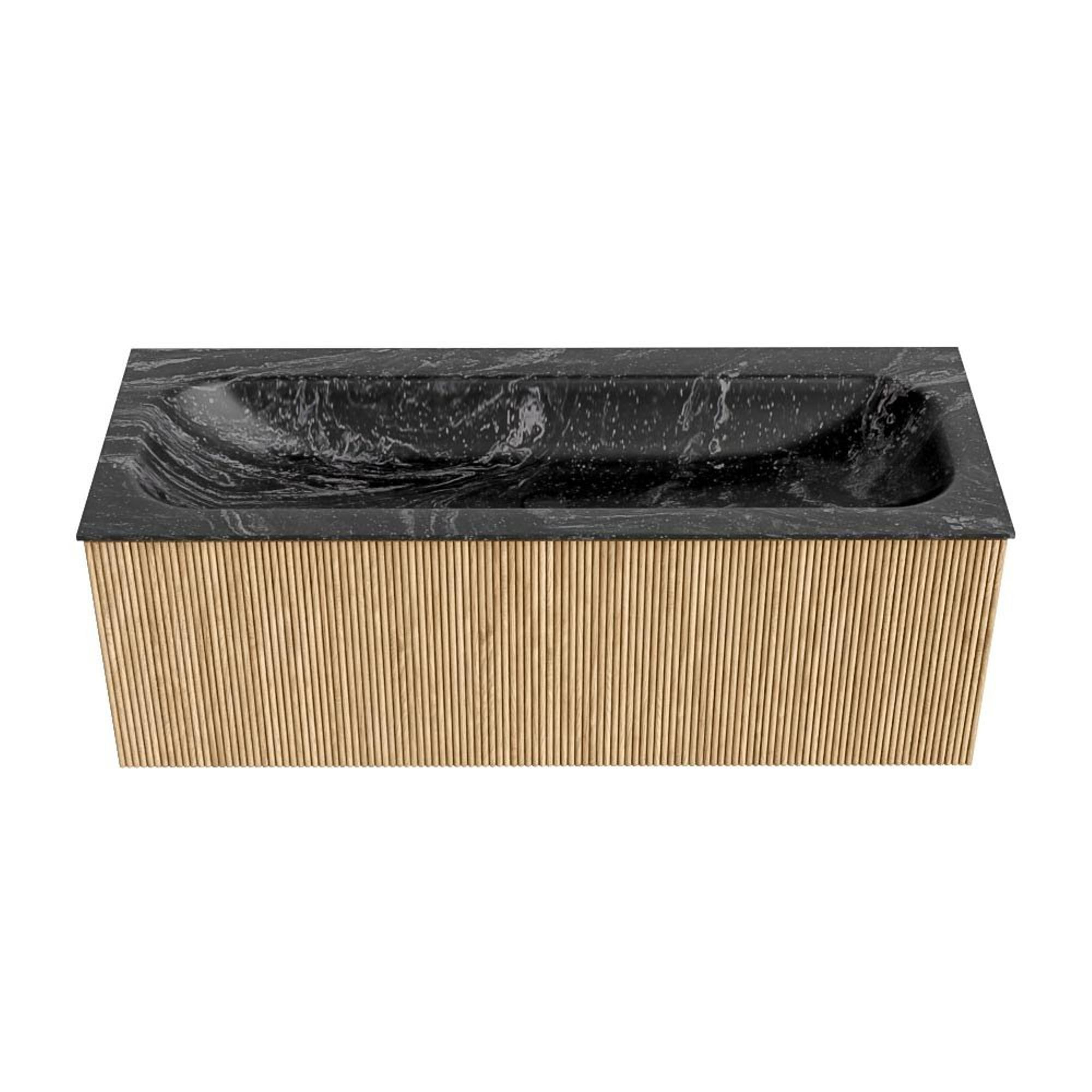 MONDIAZ KURVE-DLUX 120cm badmeubel kleur Oak met 1 lade. Wastafel BIG LARGE midden zonder kraangat kleur Lava.
