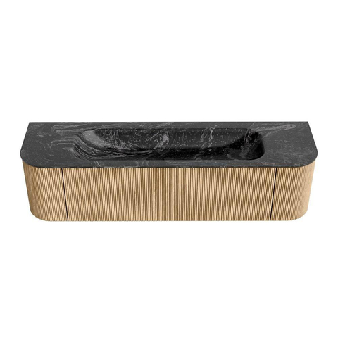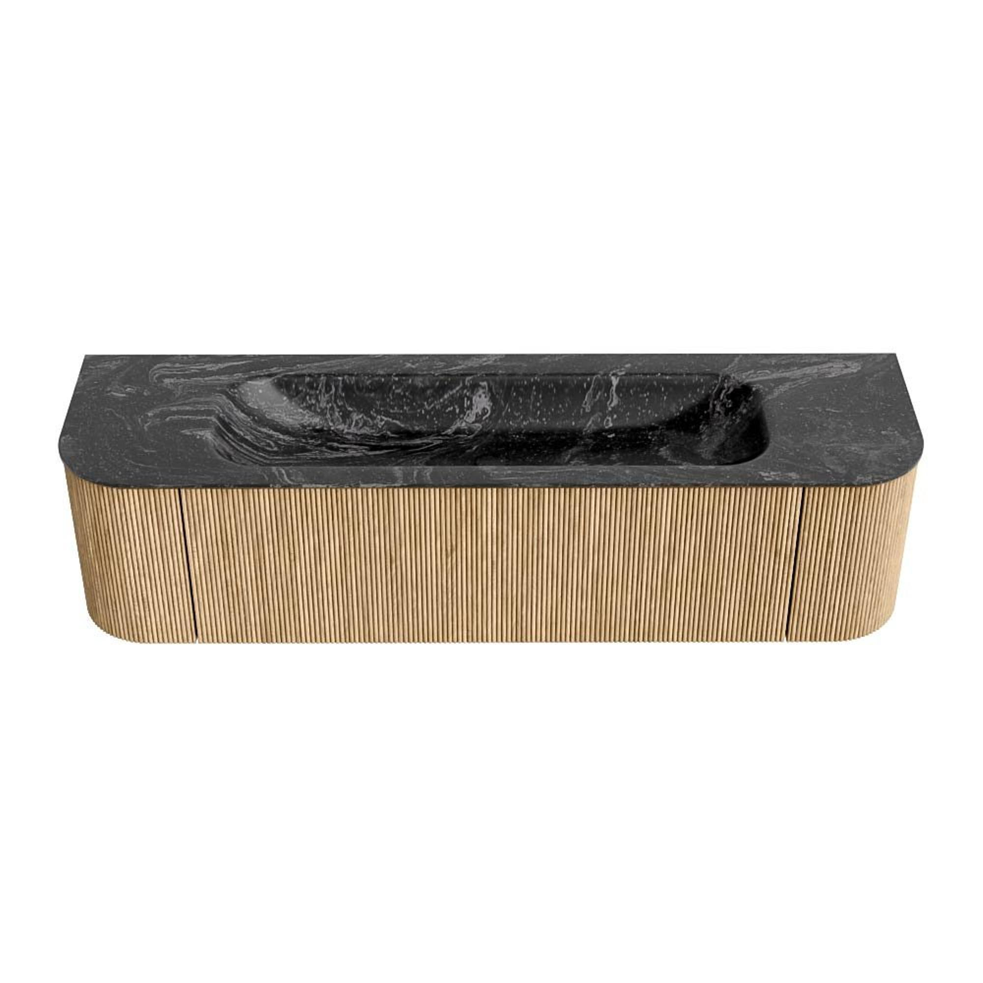 MONDIAZ KURVE-DLUX 170cm badmeubel met module 25 Len R kleur Oak met 1 lade en 2 deuren. Wastafel BIG LARGE midden 1 kraangat kleur Lava.