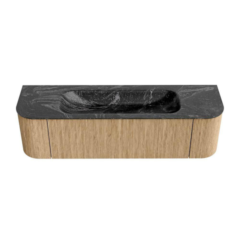 MONDIAZ KURVE-DLUX 160cm badmeubel met module 25 Len R kleur Oak met 1 lade en 2 deuren. Wastafel BIG MEDIUM midden 1 kraangat kleur Lava.