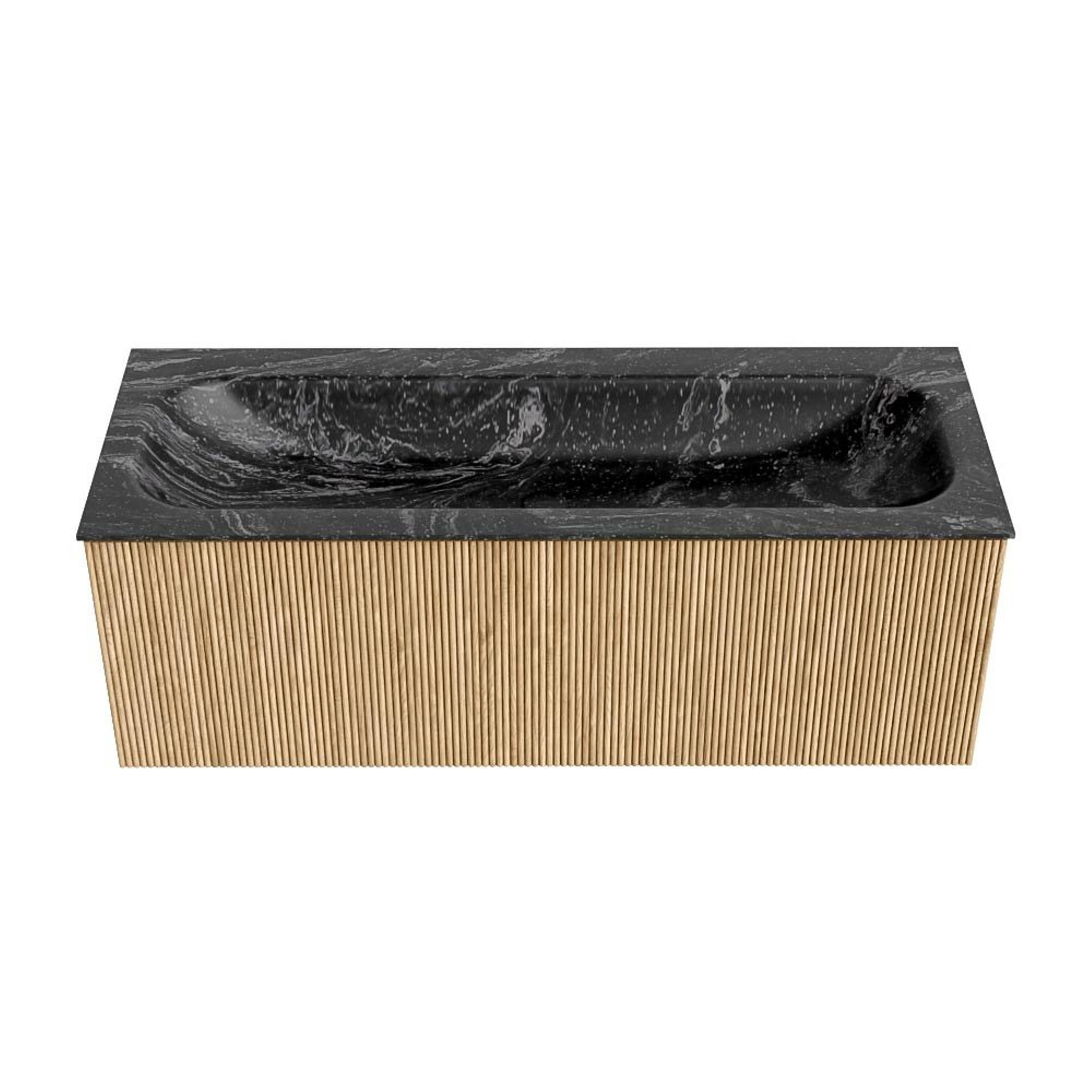 MONDIAZ KURVE-DLUX 120cm badmeubel kleur Oak met 1 lade. Wastafel BIG LARGE midden 2 kraangaten kleur Lava.