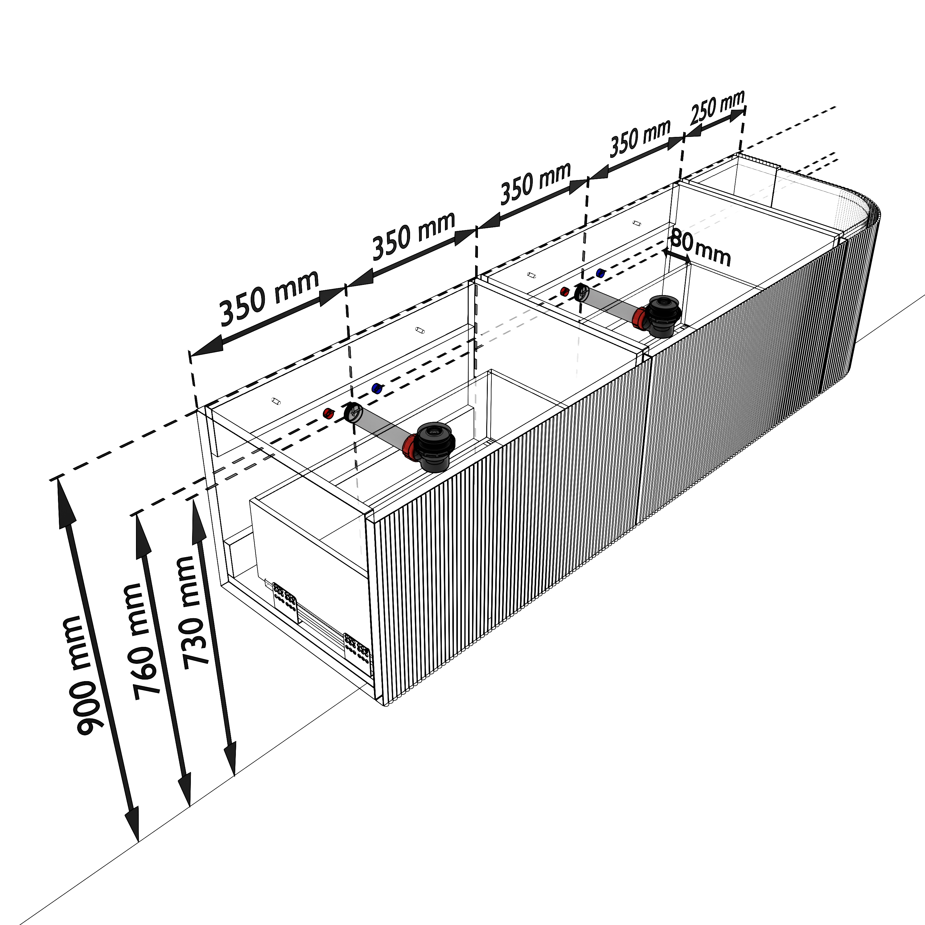Personaliseer jouw KURVE met verschillende opties: Van een strak design zonder rondingen tot beide afgeronde hoeken, precies zoals jij het wilt. Beschikbaar in diverse maten, van 50cm tot 20cm, als set of op maat gemaakt voor jouw badkamer. Maak een statement met hoogwaardige wastafels in 5 CORIAN Solid Surface marmerkleuren en effen tinten zoals Talc en Urban. De set heeft ook meerdere modellen wastafels, elk met een unieke uitstraling en hoogwaardige afwerking, en laat KURVE jouw perfecte badkamer tot leven brengen.
