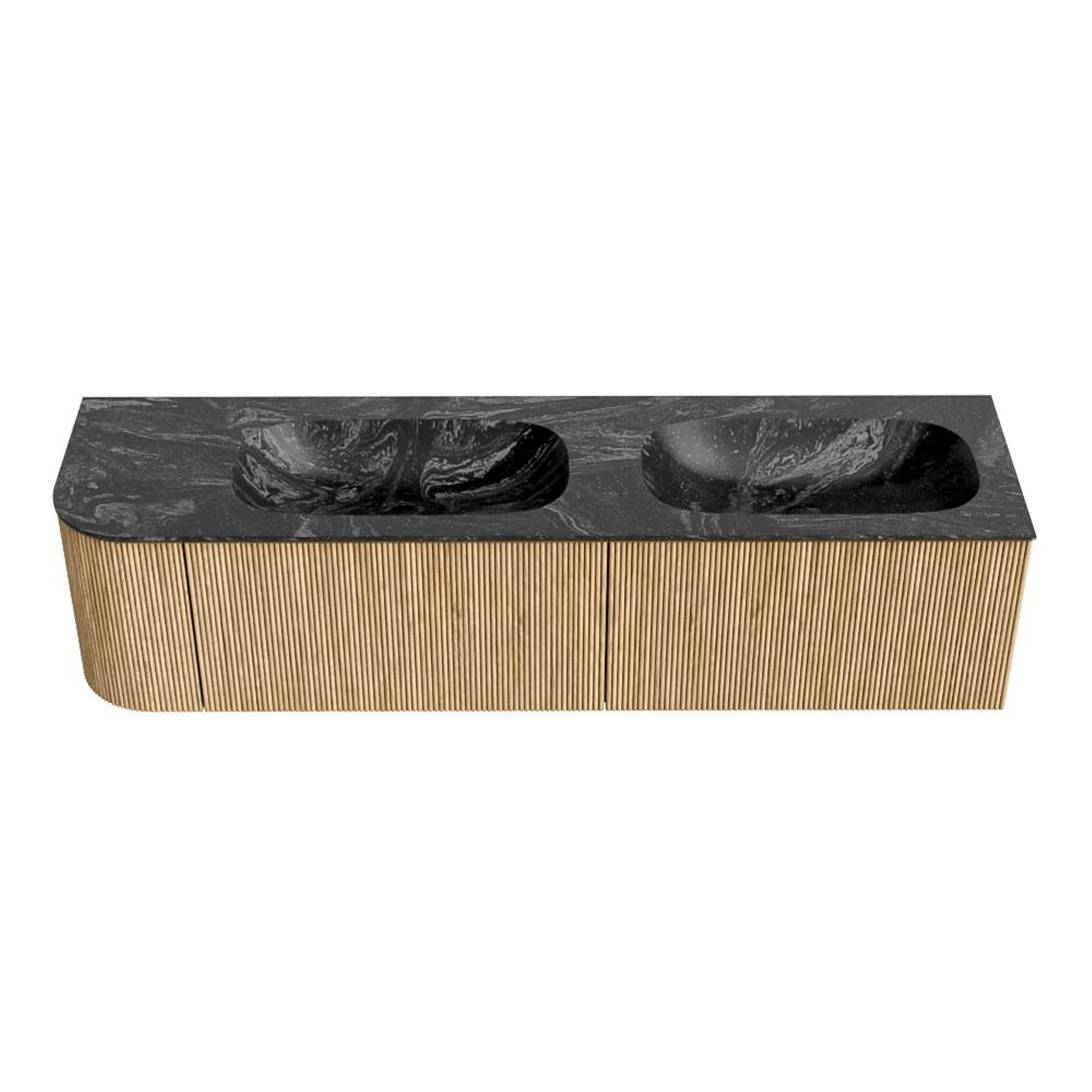 MONDIAZ KURVE-DLUX 175cm badmeubel met module 25 L kleur Oak met 2 lades en 1 deur. Wastafel STOR SMALL dubbel / rechts zonder kraangat kleur Lava.
