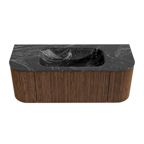 MONDIAZ KURVE-DLUX 120cm badmeubel met module 25 Len R kleur Walnut met 1 lade en 2 deuren. Wastafel BIG SMALL midden zonder kraangat kleur Lava.