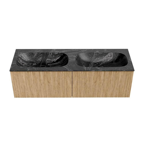 MONDIAZ KURVE-DLUX 140cm badmeubel kleur Oak met 2 lades. Wastafel STOR SMALL dubbel 2 kraangaten kleur Lava.