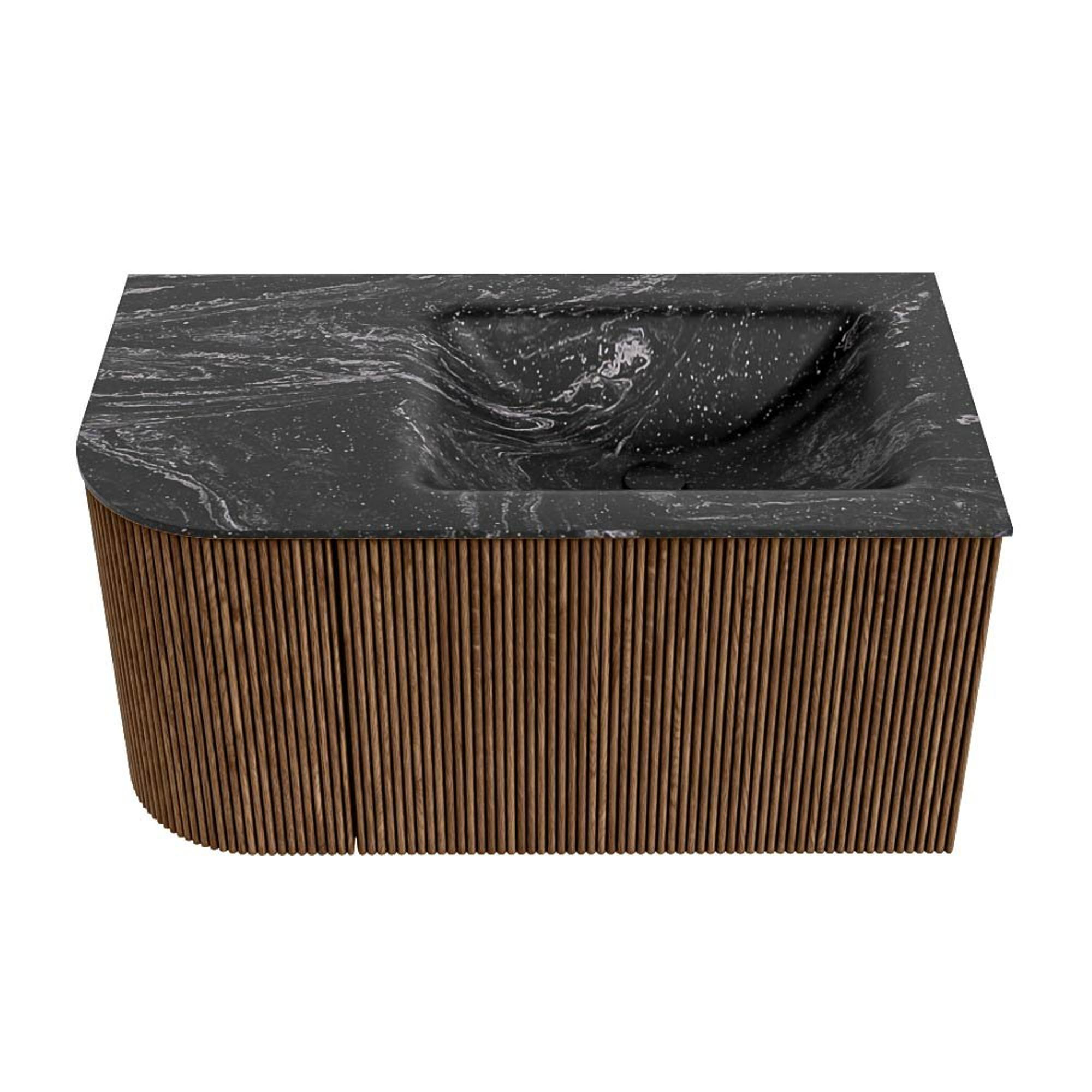 MONDIAZ KURVE-DLUX 85cm badmeubel met module 25 L kleur Walnut met 1 lade en 1 deur. Wastafel CLOUD rechts zonder kraangat kleur Lava.