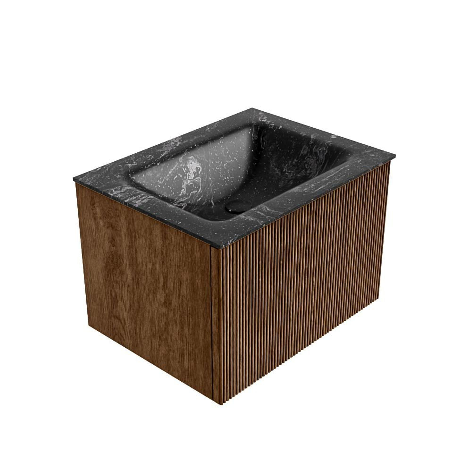 MONDIAZ KURVE-DLUX 60cm badmeubel kleur Walnut met 1 lade. Wastafel CLOUD midden zonder kraangat kleur Lava.