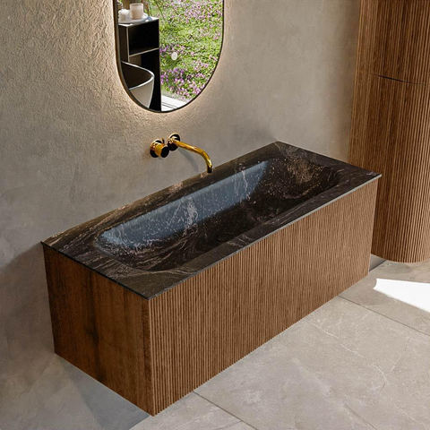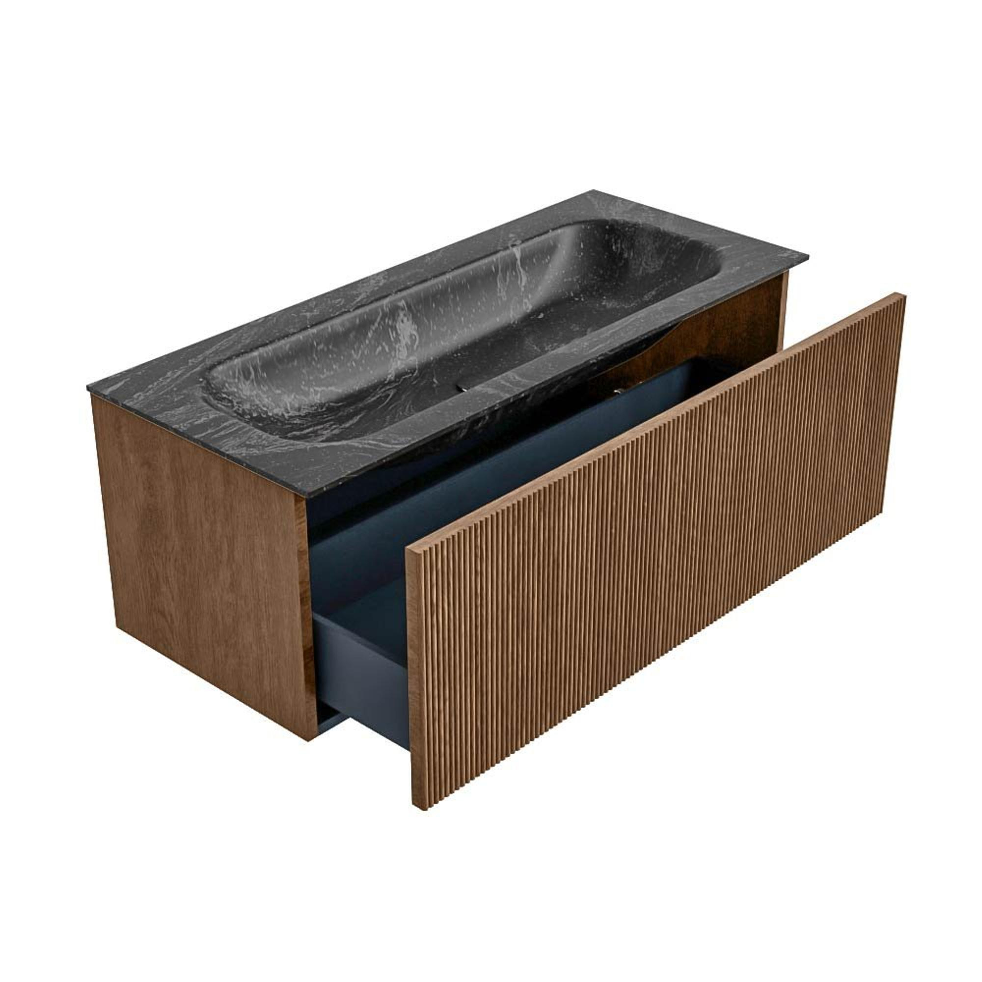 MONDIAZ KURVE-DLUX 110cm badmeubel kleur Walnut met 1 lade. Wastafel BIG MEDIUM midden zonder kraangat kleur Lava.