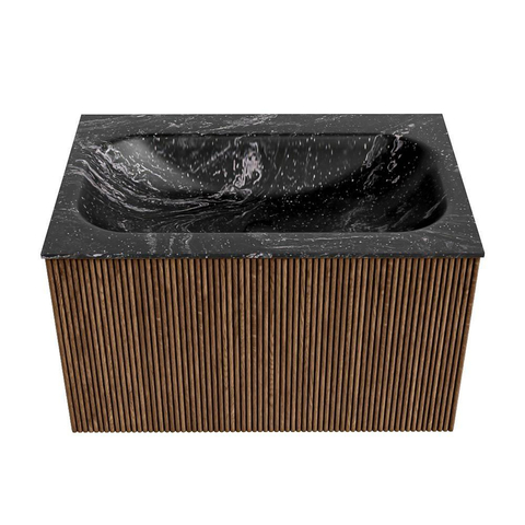 MONDIAZ KURVE-DLUX 70cm badmeubel kleur Walnut met 1 lade. Wastafel BIG SMALL midden 1 kraangat kleur Lava.