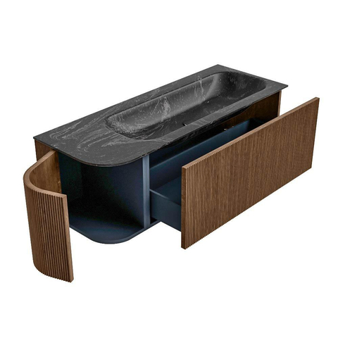 MONDIAZ KURVE-DLUX 125cm badmeubel met module 25 L kleur Walnut met 1 lade en 1 deur. Wastafel BIG MEDIUM rechts zonder kraangat kleur Lava.