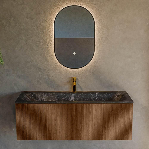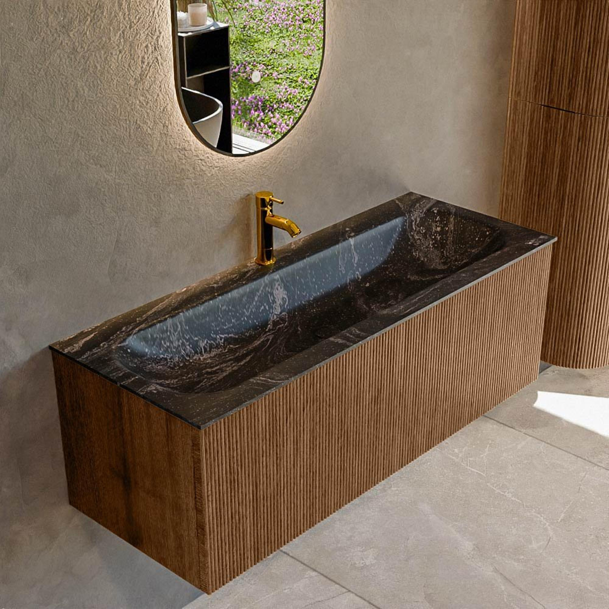 MONDIAZ KURVE-DLUX 120cm badmeubel kleur Walnut met 1 lade. Wastafel BIG LARGE midden 1 kraangat kleur Lava.