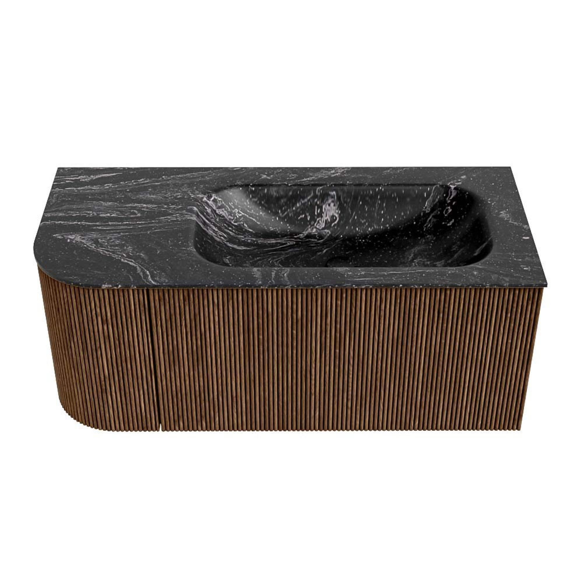 MONDIAZ KURVE-DLUX 105cm badmeubel met module 25 L kleur Walnut met 1 lade en 1 deur. Wastafel BIG SMALL rechts 1 kraangat kleur Lava.