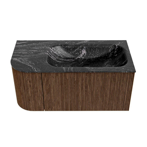 MONDIAZ KURVE-DLUX 95cm badmeubel met module 25 L kleur Walnut met 1 lade en 1 deur. Wastafel BIG SMALL rechts 1 kraangat kleur Lava.
