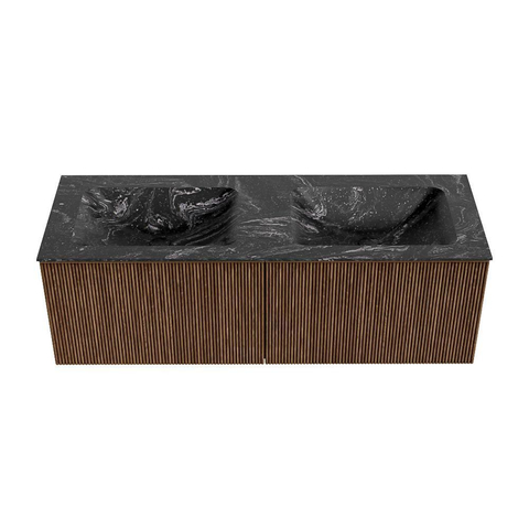 MONDIAZ KURVE-DLUX 130cm badmeubel kleur Walnut met 2 lades. Wastafel LEAF dubbel 2 kraangaten kleur Lava.