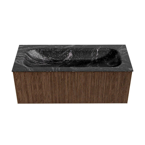 MONDIAZ KURVE-DLUX 110cm badmeubel kleur Walnut met 1 lade. Wastafel BIG MEDIUM midden 1 kraangat kleur Lava.