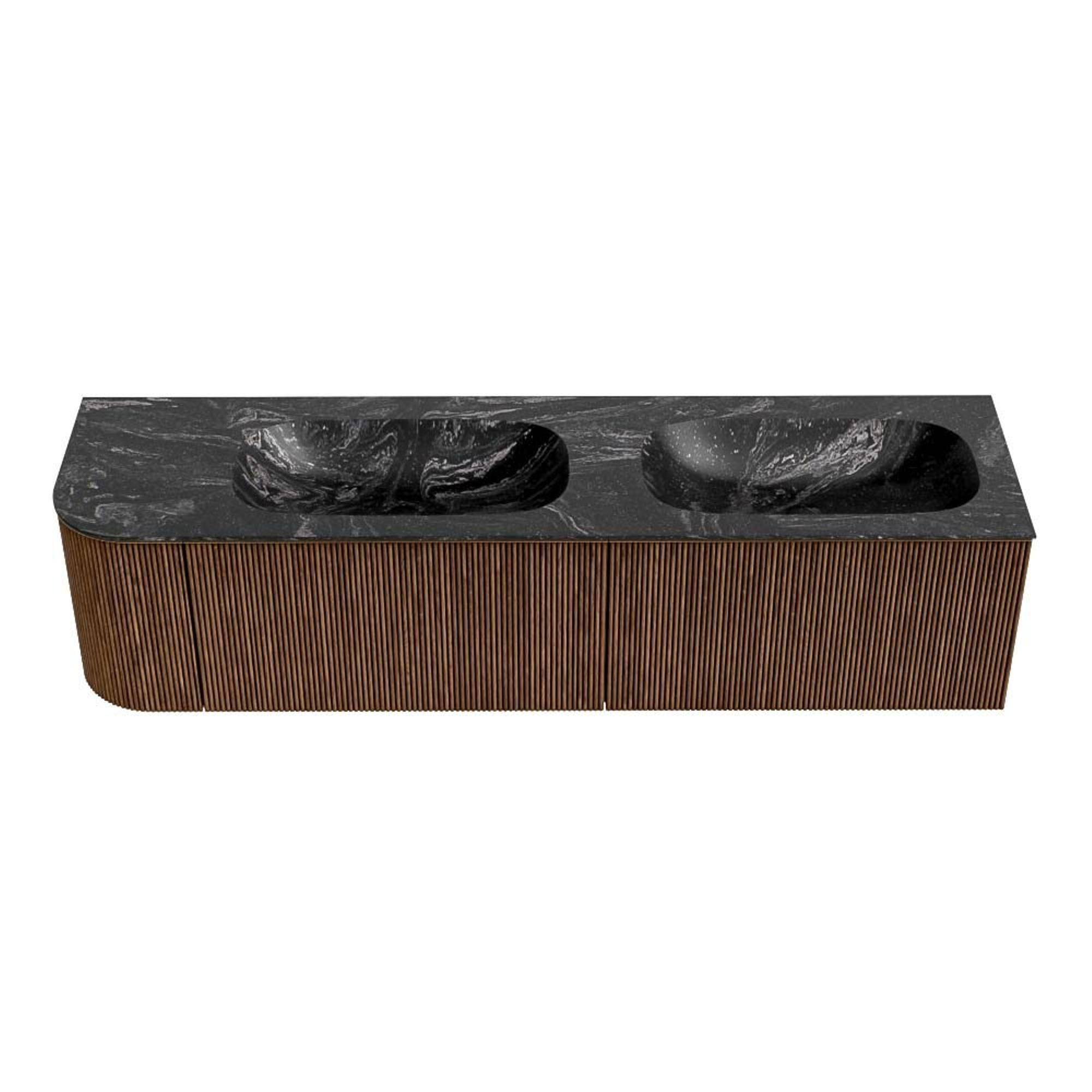 MONDIAZ KURVE-DLUX 175cm badmeubel met module 25 L kleur Walnut met 2 lades en 1 deur. Wastafel STOR SMALL dubbel / rechts 2 kraangaten kleur Lava.