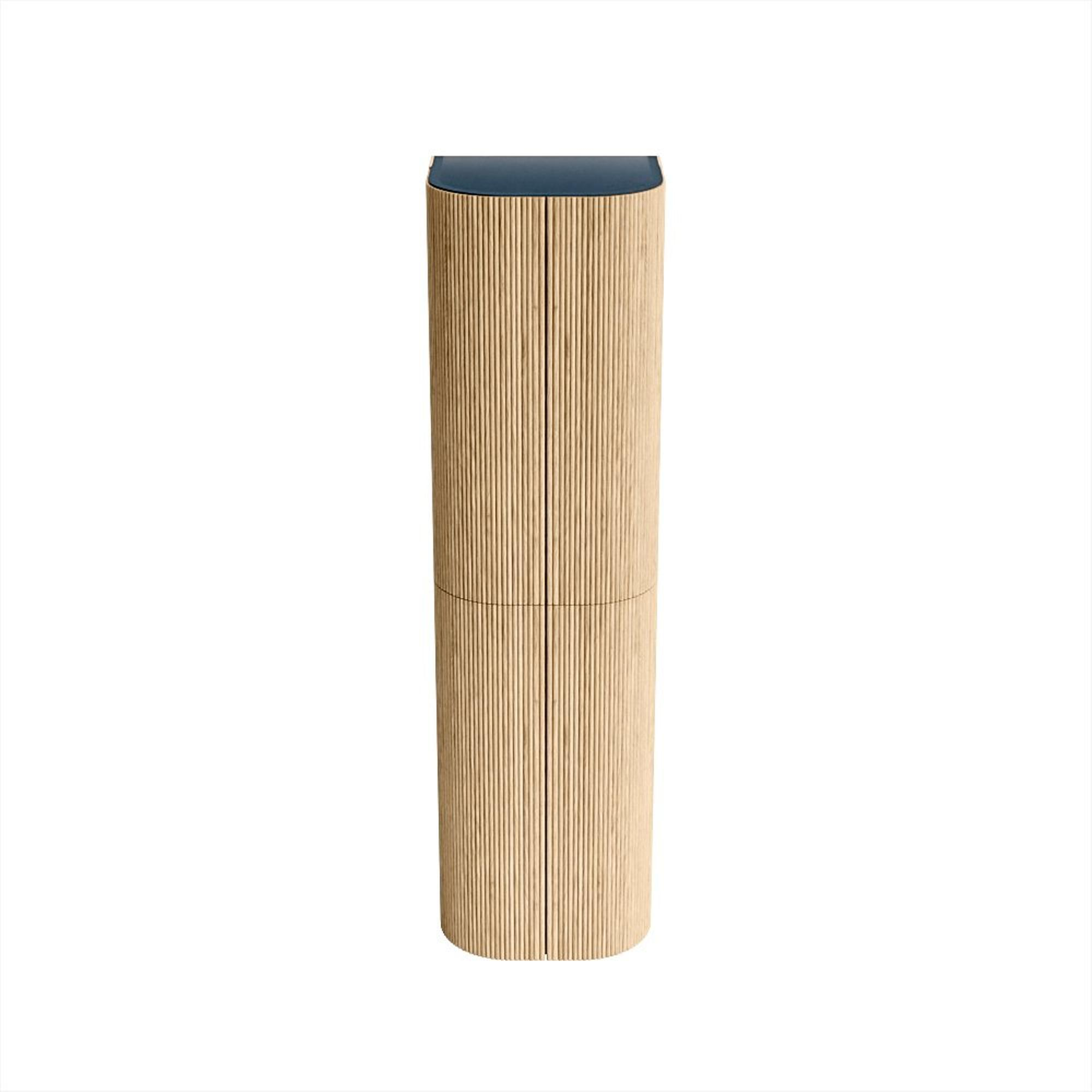 De KURVE kolomkast, verkrijgbaar in de afmeting 160x45cm of 80x45cm, is meer dan alleen een functioneel meubelstuk voor je badkamer. Met zijn keuze aan warme kleuren, Walnut of Oak, en zijn kenmerkende halfronde, verticale stroken van massief eiken, voegt de KURVE een vleugje verfijning en luxe toe aan de ruimte.Of je nu kiest voor de grotere maat van 160x45cm of de compactere versie van 80x45cm, deze kolomkast biedt voldoende opbergruimte zonder concessies te doen aan stijl. De elegante afwerking in massief eiken en fineer zorgt voor een tijdloze uitstraling die perfect past bij verschillende badkamerstijlen.