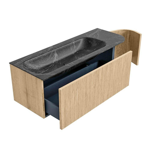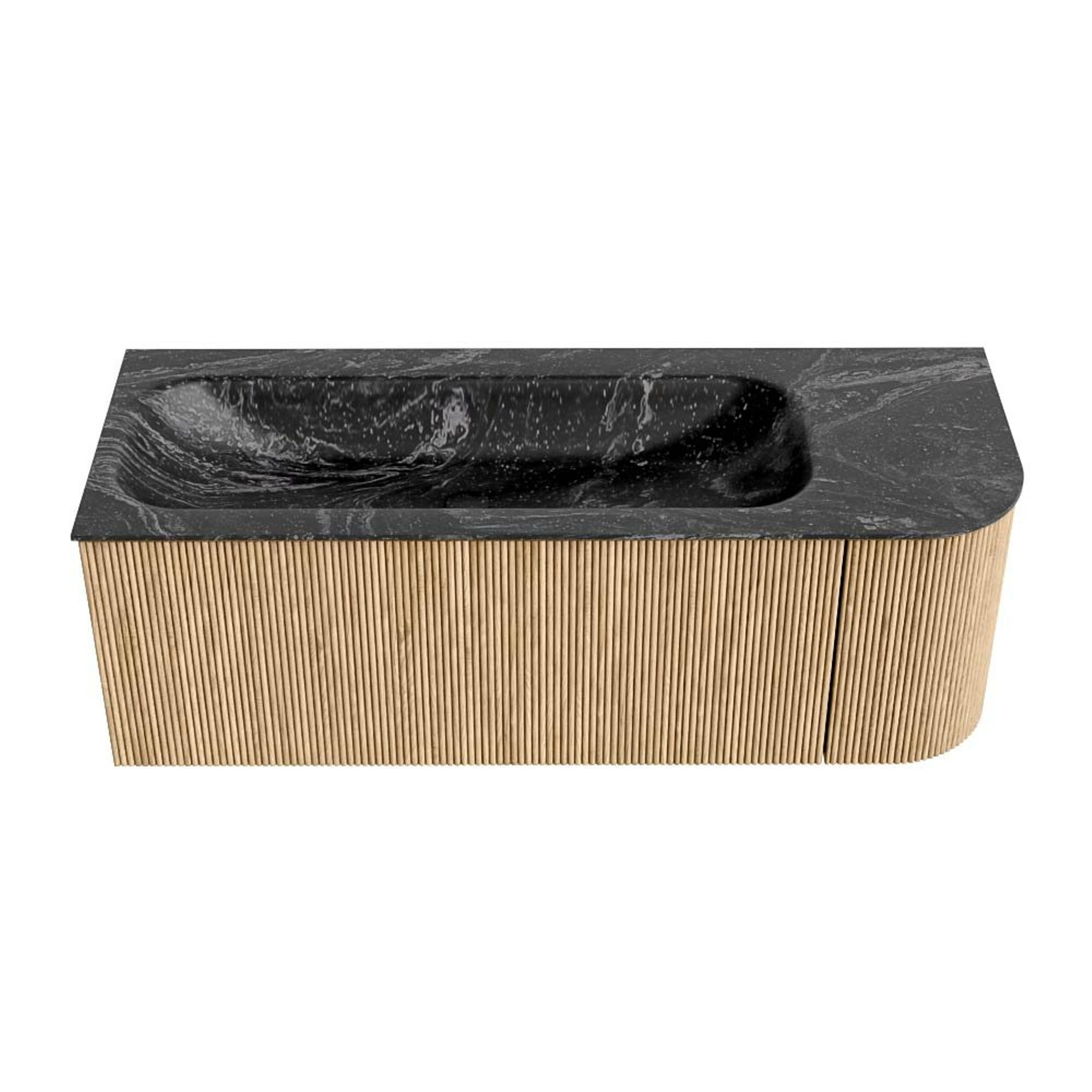 MONDIAZ KURVE-DLUX 125cm badmeubel met module 25 R kleur Oak met 1 lade en 1 deur. Wastafel BIG MEDIUM links 1 kraangat kleur Lava.