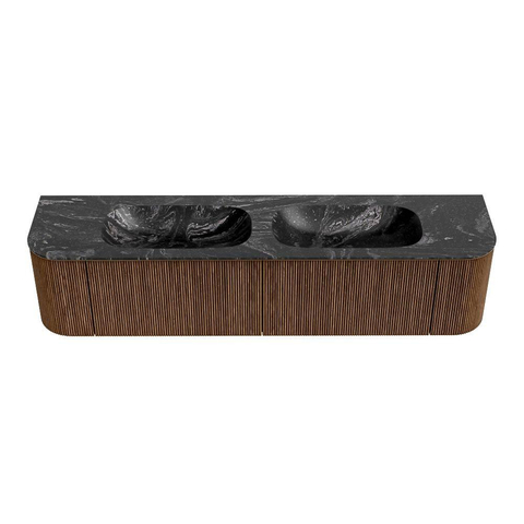 MONDIAZ KURVE-DLUX 190cm badmeubel met module 25 Len R kleur Walnut met 2 lades en 2 deuren. Wastafel STOR SMALL dubbel zonder kraangat kleur Lava.