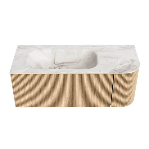 MONDIAZ KURVE-DLUX 115cm badmeubel met module 25 R kleur Oak met 1 lade en 1 deur. Wastafel BIG SMALL links 1 kraangat kleur Frappe.