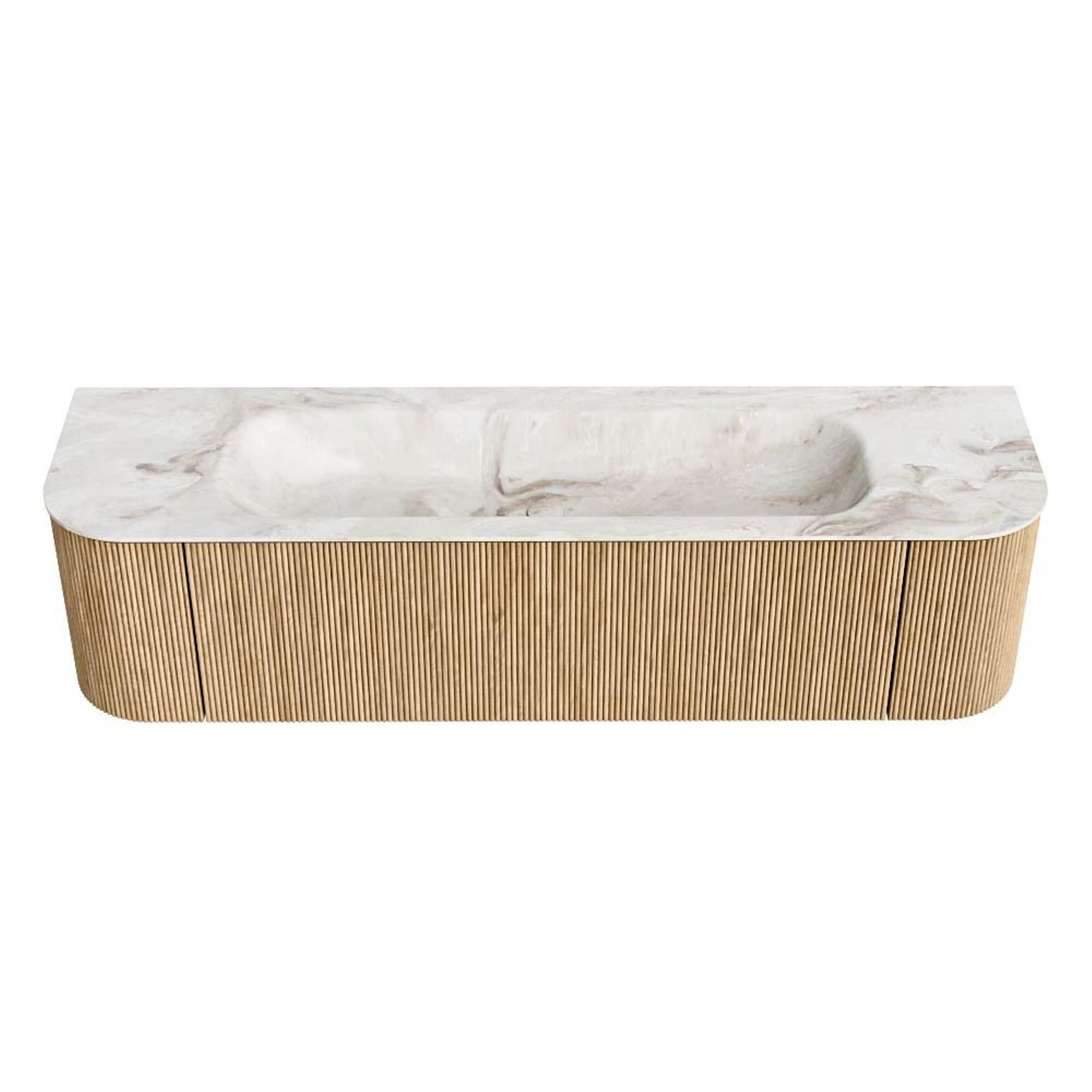 MONDIAZ KURVE-DLUX 170cm badmeubel met module 25 Len R kleur Oak met 1 lade en 2 deuren. Wastafel BIG LARGE midden zonder kraangat kleur Frappe.