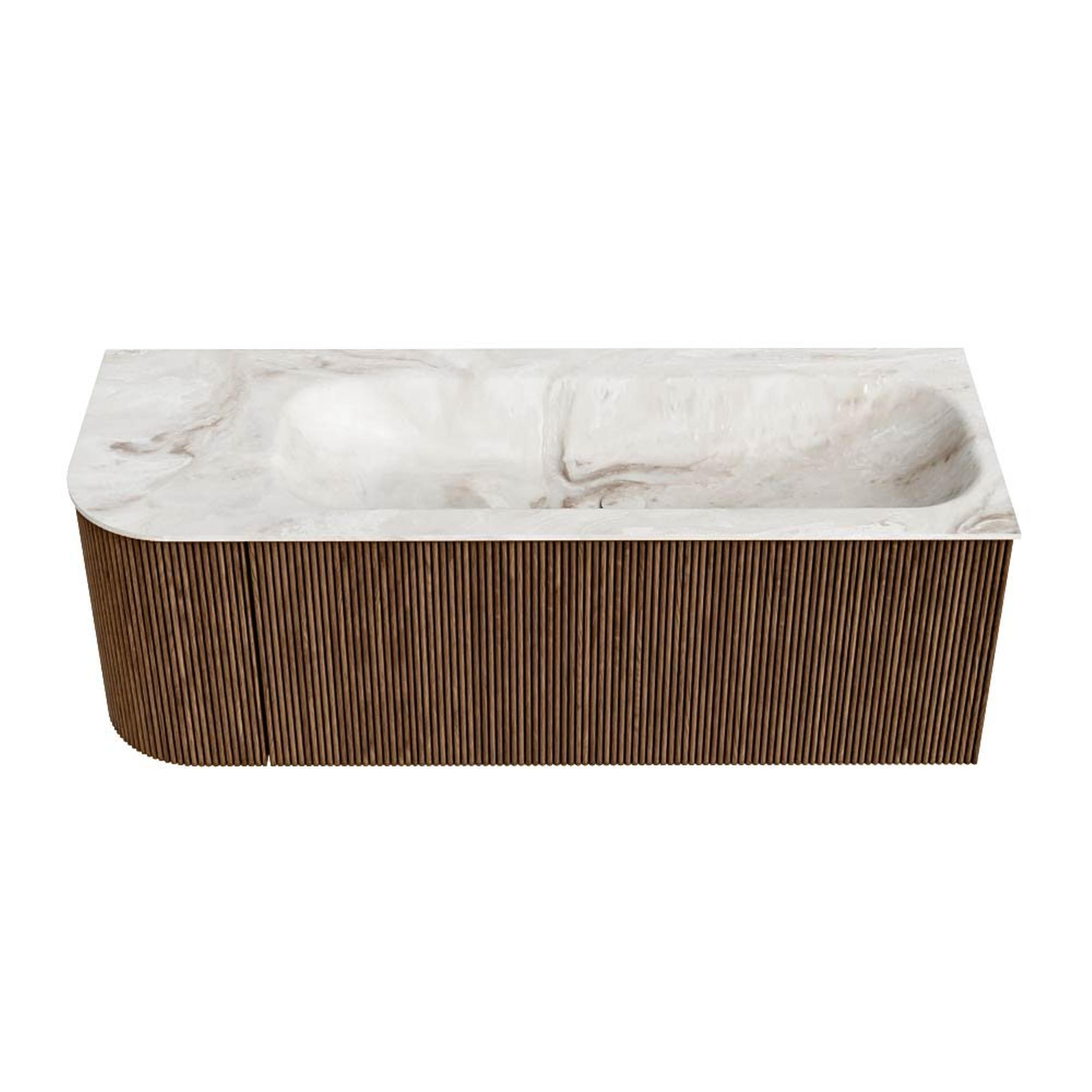 MONDIAZ KURVE-DLUX 125cm badmeubel met module 25 L kleur Walnut met 1 lade en 1 deur. Wastafel BIG MEDIUM rechts zonder kraangat kleur Frappe.