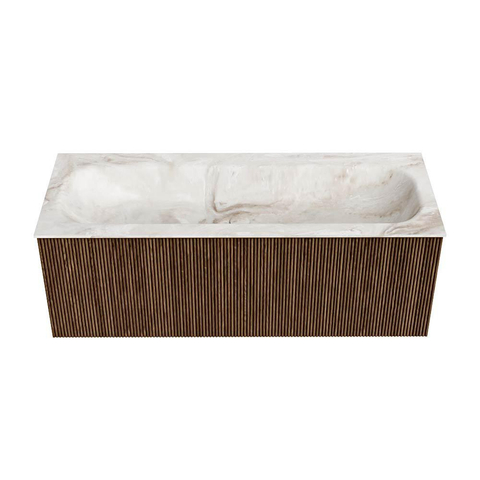 MONDIAZ KURVE-DLUX 120cm badmeubel kleur Walnut met 1 lade. Wastafel BIG LARGE midden zonder kraangat kleur Frappe.