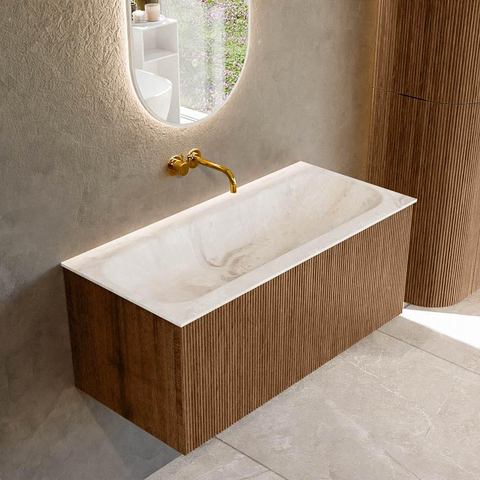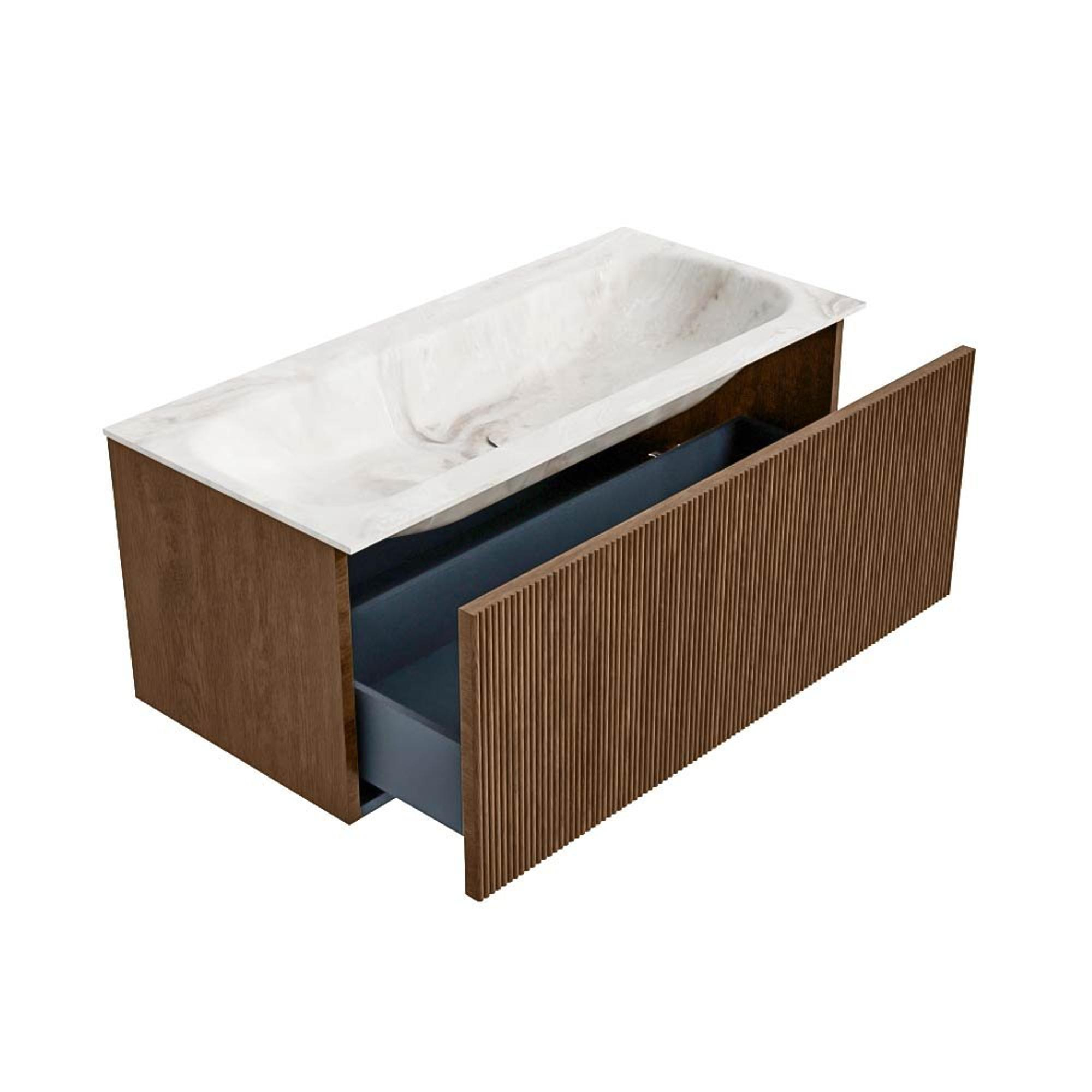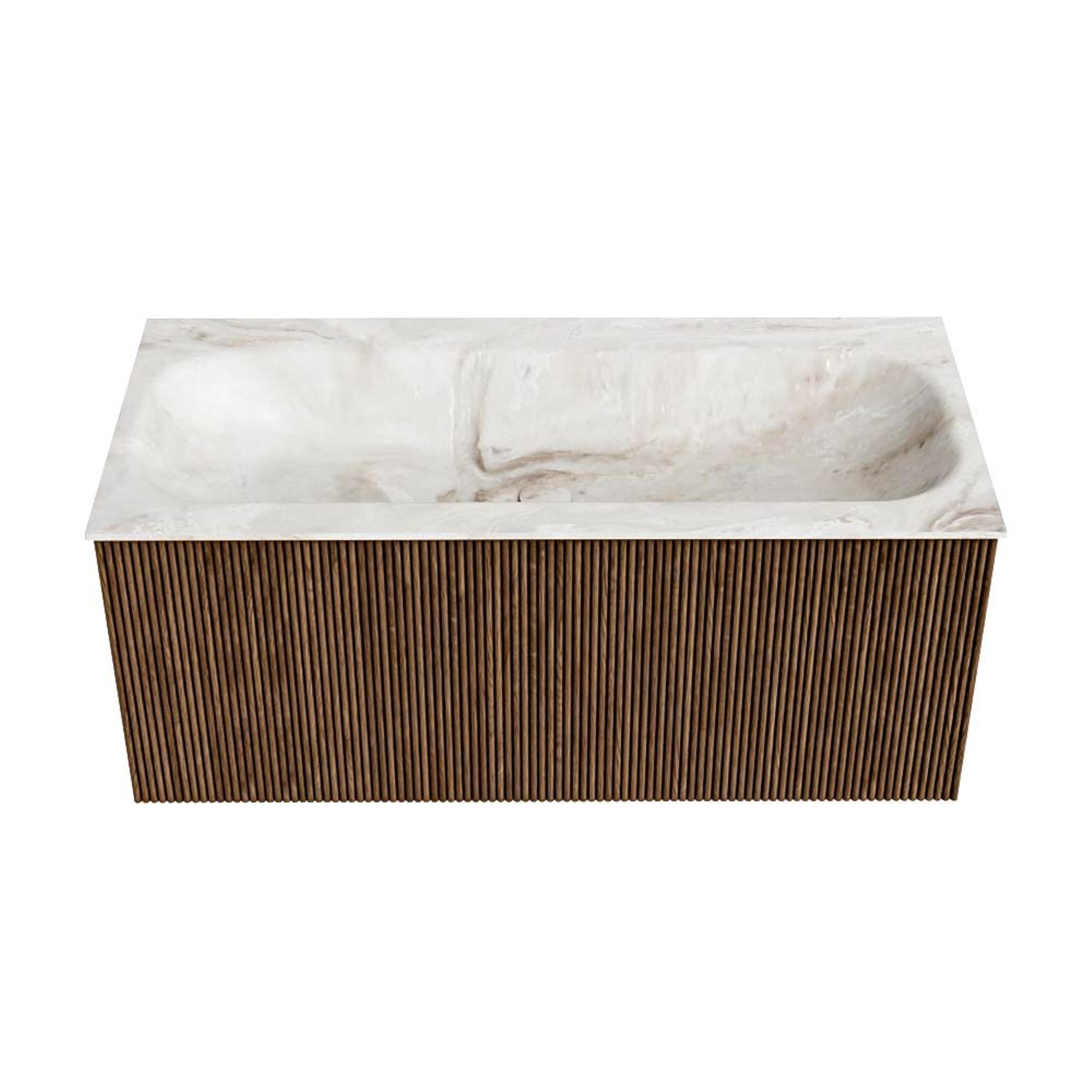 MONDIAZ KURVE-DLUX 100cm badmeubel kleur Walnut met 1 lade. Wastafel BIG MEDIUM midden zonder kraangat kleur Frappe.