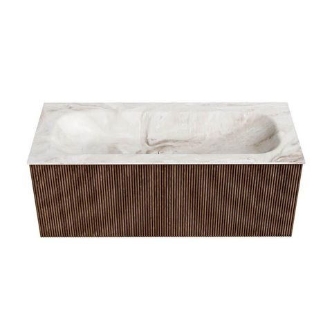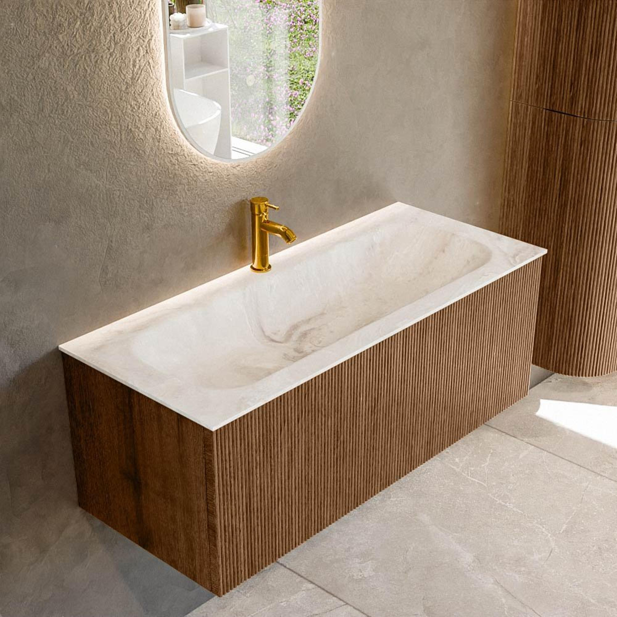 MONDIAZ KURVE-DLUX 110cm badmeubel kleur Walnut met 1 lade. Wastafel BIG MEDIUM midden 1 kraangat kleur Frappe.