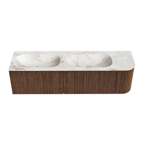 MONDIAZ KURVE-DLUX 165cm badmeubel met module 25 R kleur Walnut met 2 lades en 1 deur. Wastafel STOR SMALL dubbel / links zonder kraangat kleur Frappe.
