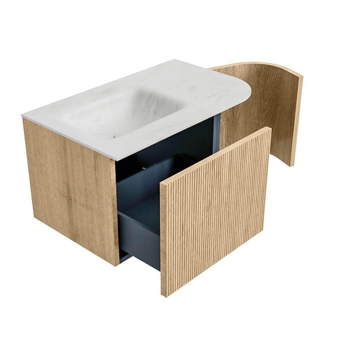 MONDIAZ KURVE-DLUX 75cm badmeubel met module 25 R kleur Oak met 1 lade en 1 deur. Wastafel GRUNNE links zonder kraangat kleur Opalo.