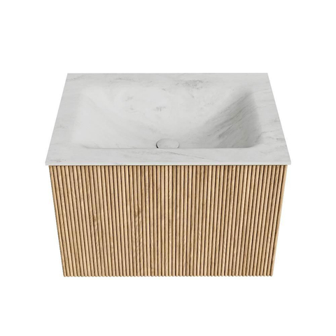 MONDIAZ KURVE-DLUX 60cm badmeubel kleur Oak met 1 lade. Wastafel CLOUD midden 1 kraangat kleur Opalo.