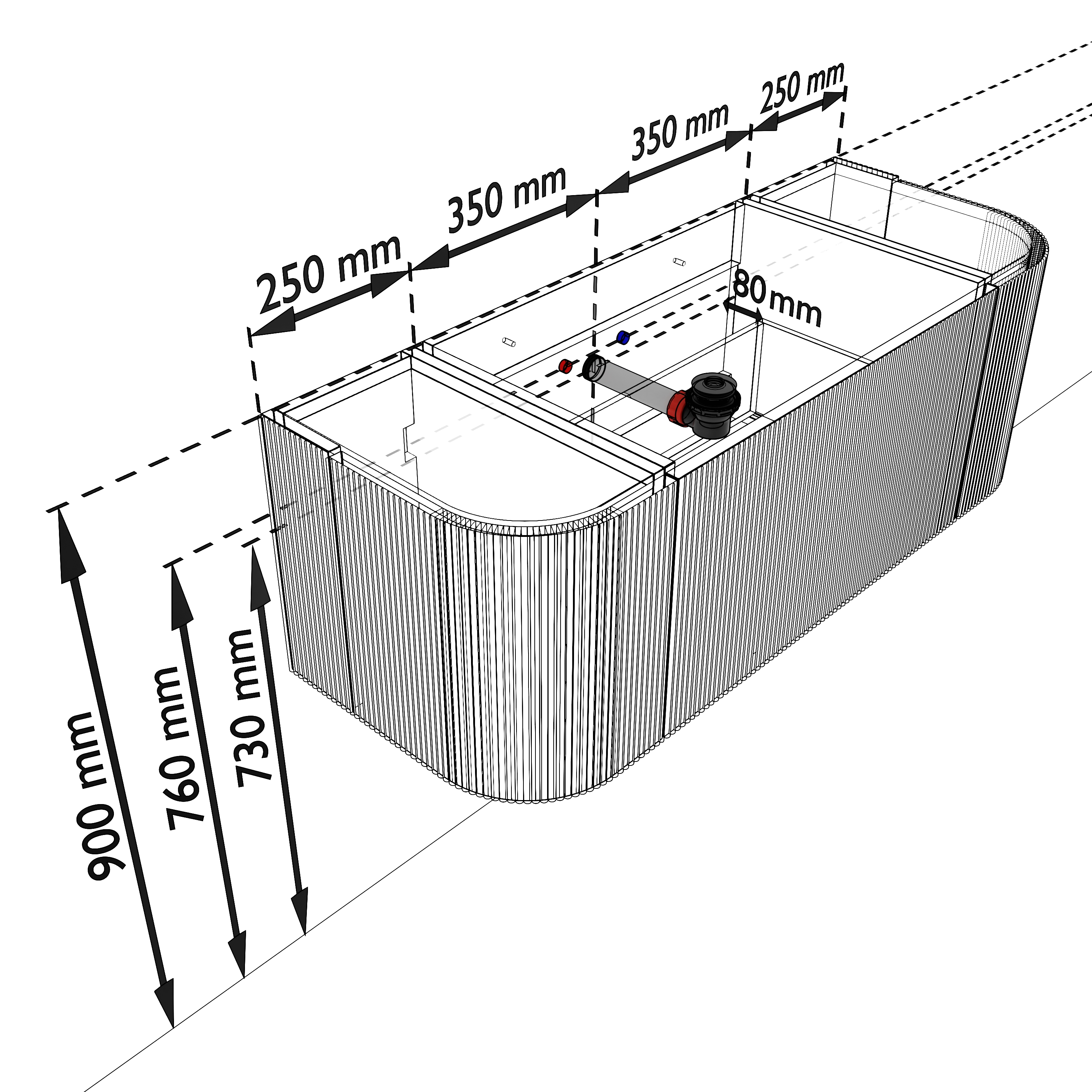 Personaliseer jouw KURVE met verschillende opties: Van een strak design zonder rondingen tot beide afgeronde hoeken, precies zoals jij het wilt. Beschikbaar in diverse maten, van 50cm tot 20cm, als set of op maat gemaakt voor jouw badkamer. Maak een statement met hoogwaardige wastafels in 5 CORIAN Solid Surface marmerkleuren en effen tinten zoals Talc en Urban. De set heeft ook meerdere modellen wastafels, elk met een unieke uitstraling en hoogwaardige afwerking, en laat KURVE jouw perfecte badkamer tot leven brengen.