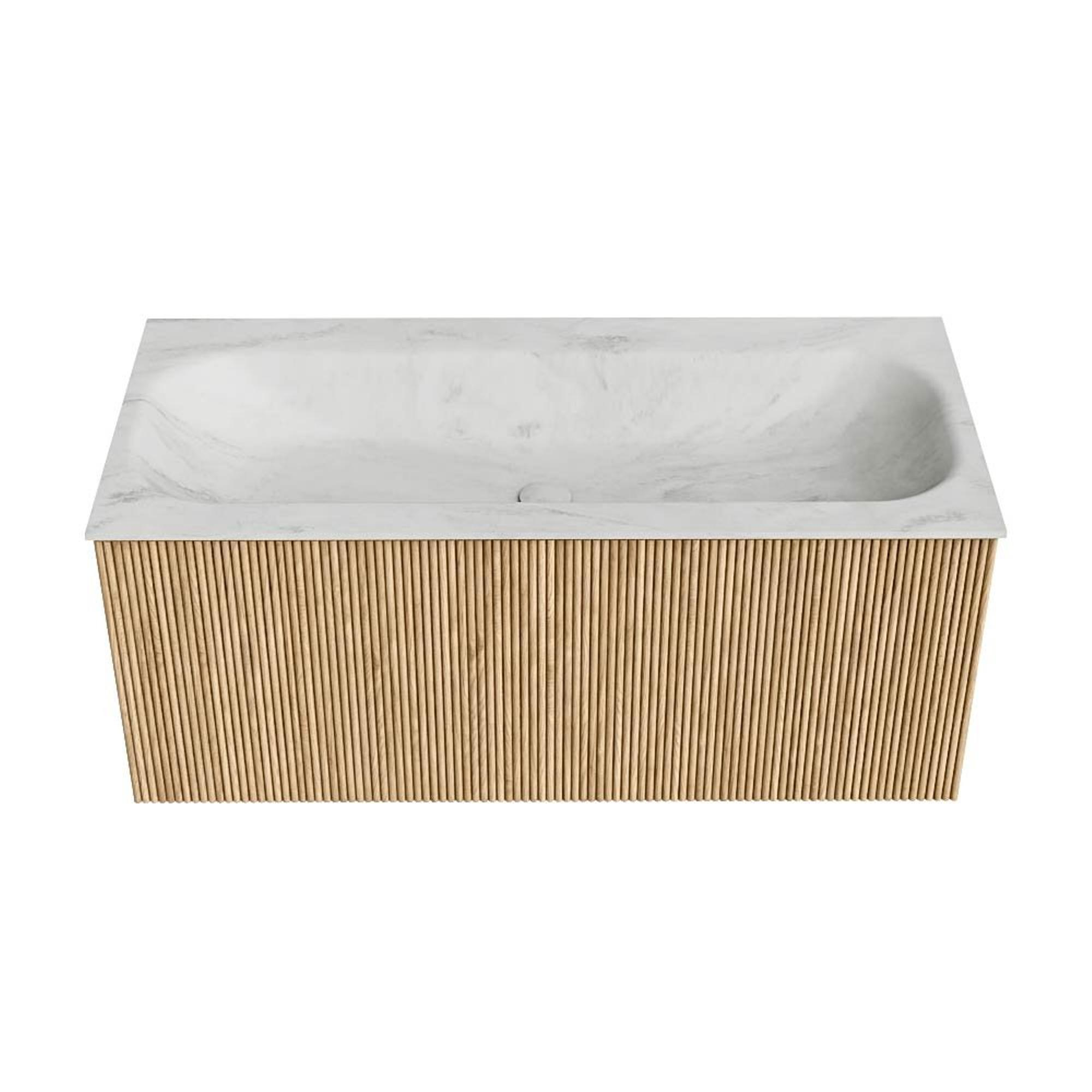 MONDIAZ KURVE-DLUX 100cm badmeubel kleur Oak met 1 lade. Wastafel BIG MEDIUM midden zonder kraangat kleur Opalo.
