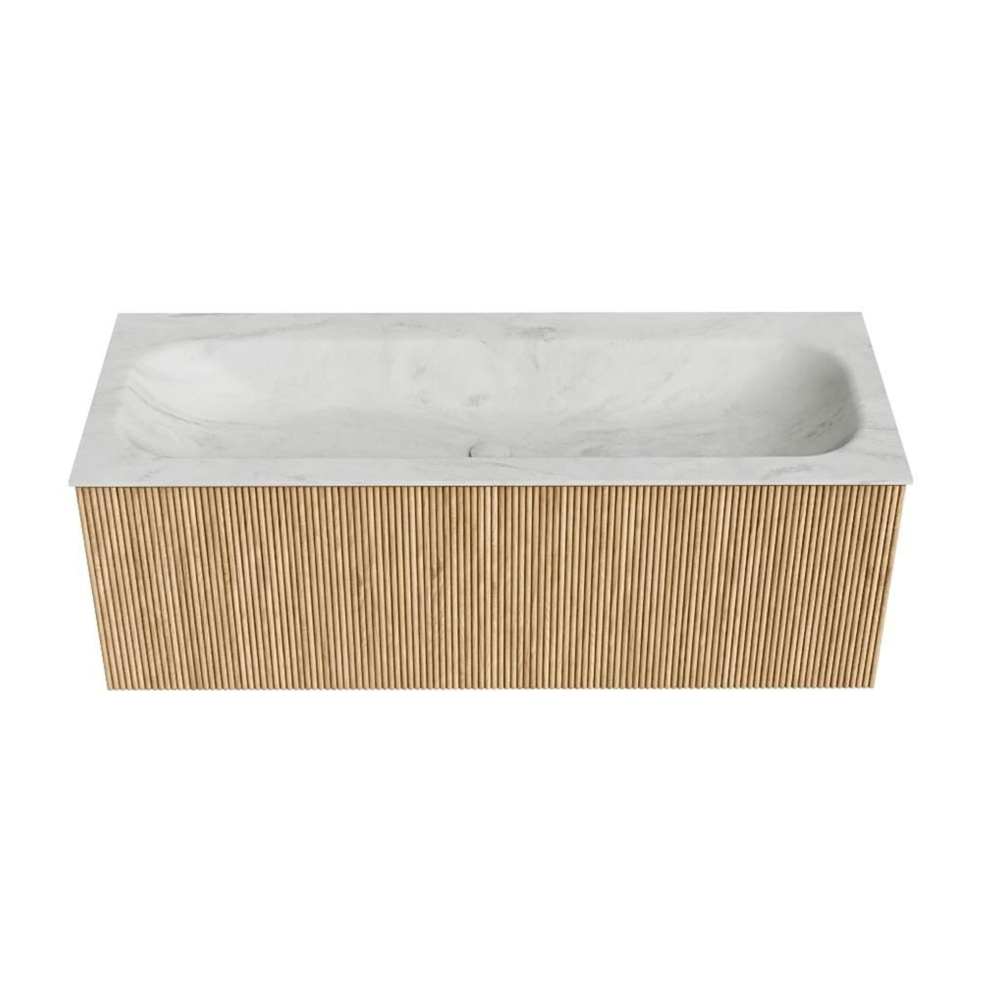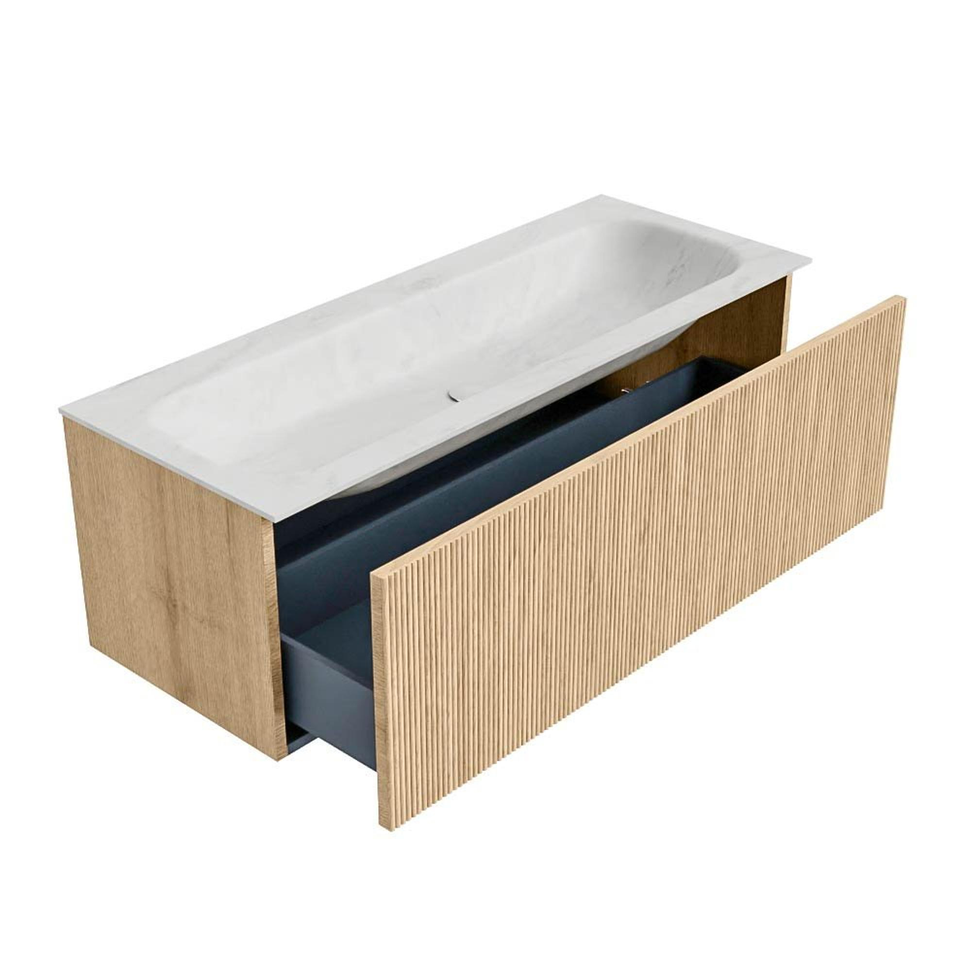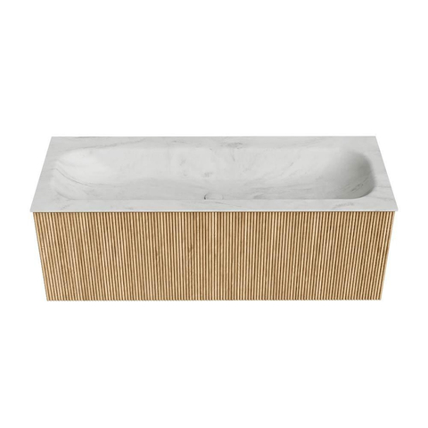 MONDIAZ KURVE-DLUX 120cm badmeubel kleur Oak met 1 lade. Wastafel BIG LARGE midden 2 kraangaten kleur Opalo.
