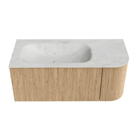 MONDIAZ KURVE-DLUX 105cm badmeubel met module 25 R kleur Oak met 1 lade en 1 deur. Wastafel BIG SMALL links 1 kraangat kleur Opalo.