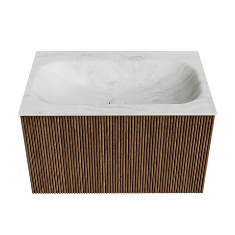 MONDIAZ KURVE-DLUX 70cm badmeubel kleur Walnut met 1 lade. Wastafel BIG SMALL midden zonder kraangat kleur Opalo.