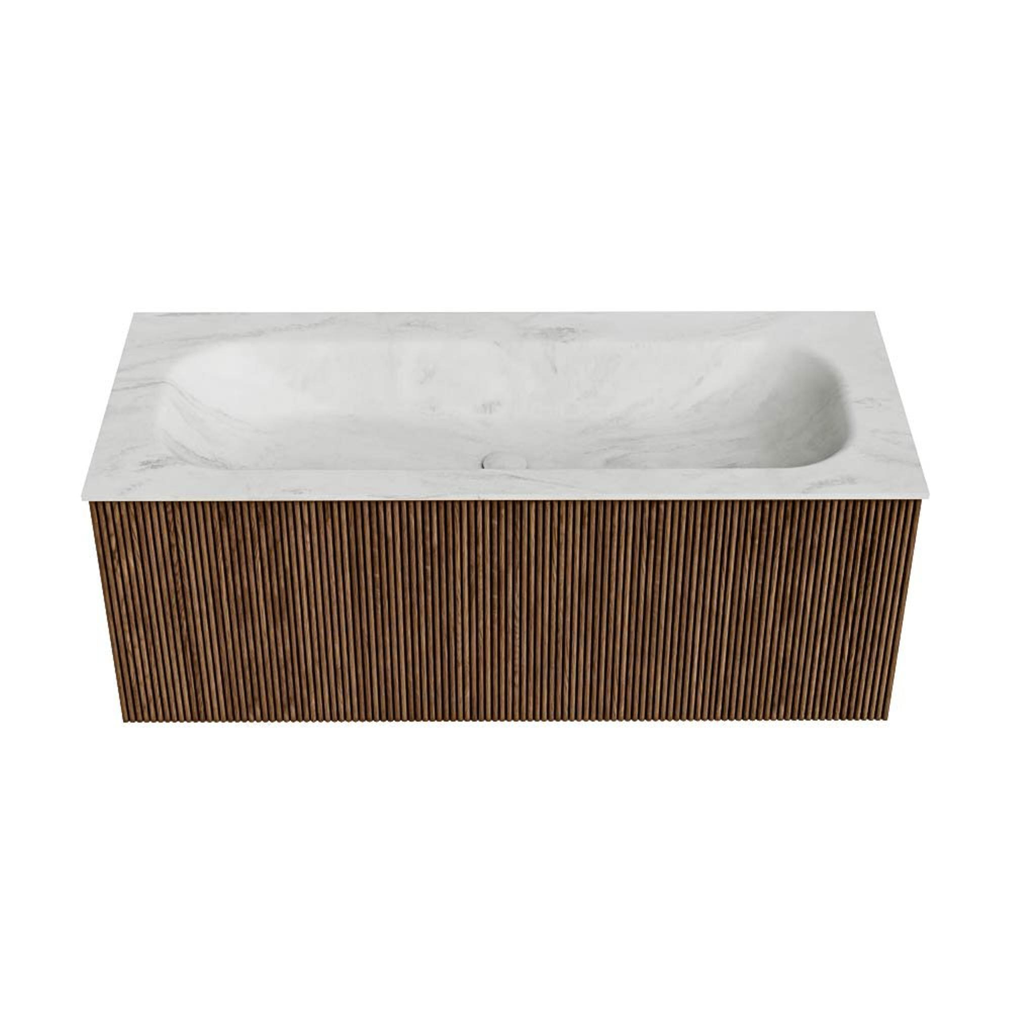 MONDIAZ KURVE-DLUX 110cm badmeubel kleur Walnut met 1 lade. Wastafel BIG MEDIUM midden zonder kraangat kleur Opalo.