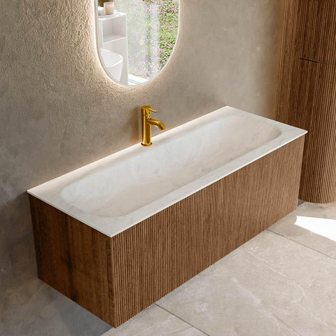 MONDIAZ KURVE-DLUX 120cm badmeubel kleur Walnut met 1 lade. Wastafel BIG LARGE midden 1 kraangat kleur Opalo.