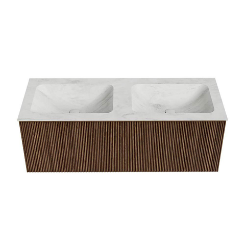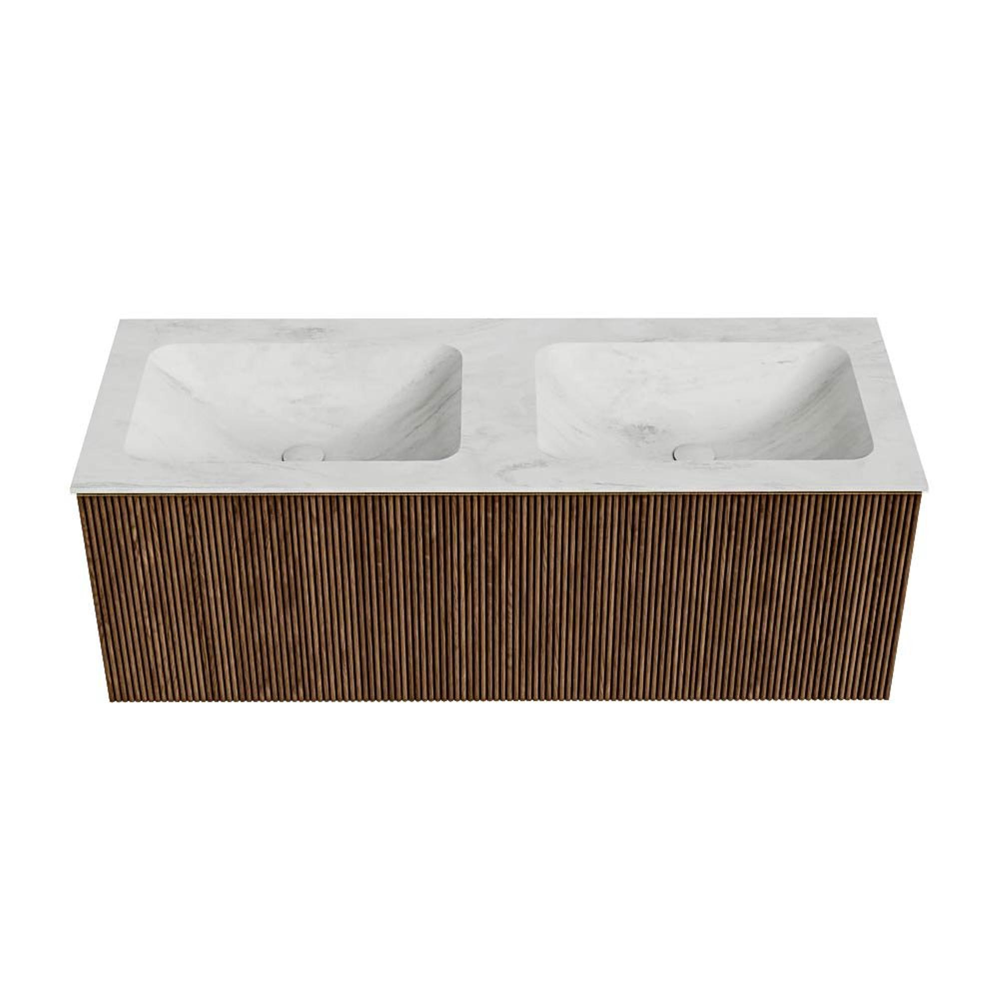 MONDIAZ KURVE-DLUX 120cm badmeubel kleur Walnut met 1 lade. Wastafel LEAF dubbel 2 kraangaten kleur Opalo.