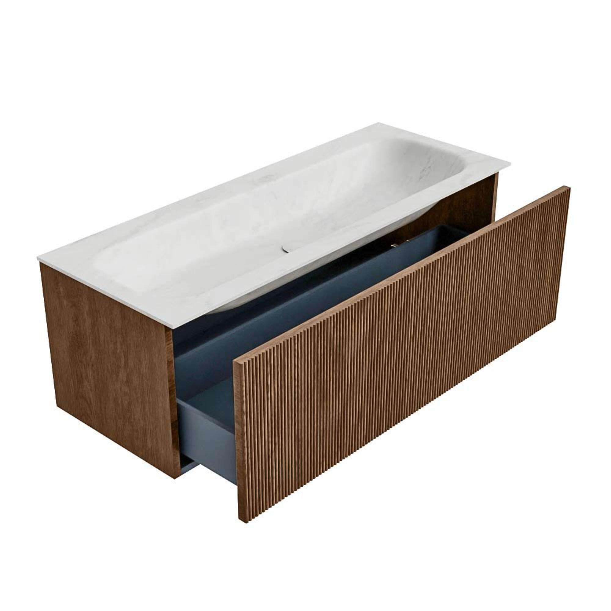 MONDIAZ KURVE-DLUX 120cm badmeubel kleur Walnut met 1 lade. Wastafel BIG LARGE midden 2 kraangaten kleur Opalo.
