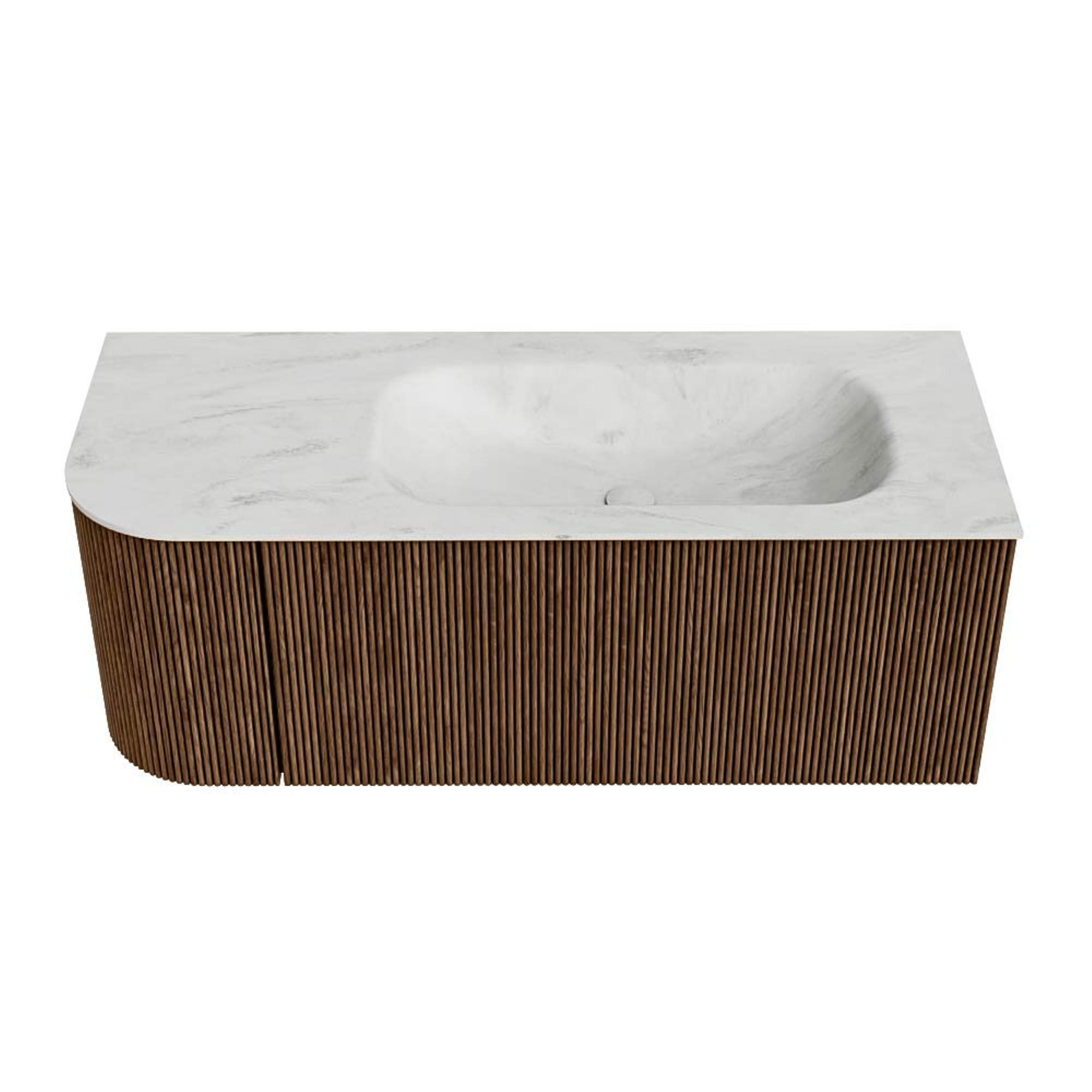 MONDIAZ KURVE-DLUX 115cm badmeubel met module 25 L kleur Walnut met 1 lade en 1 deur. Wastafel BIG SMALL rechts 1 kraangat kleur Opalo.
