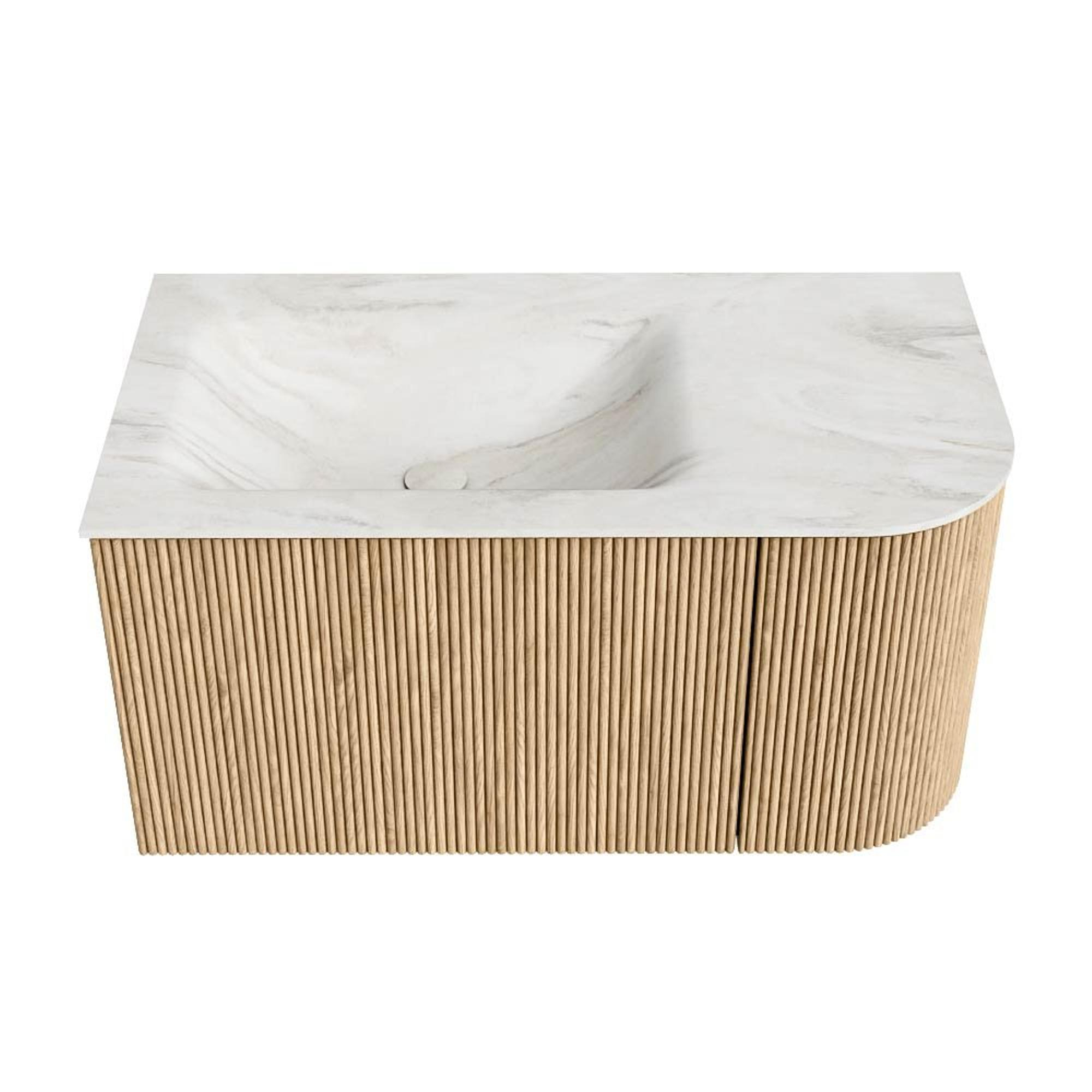 MONDIAZ KURVE-DLUX 85cm badmeubel met module 25 R kleur Oak met 1 lade en 1 deur. Wastafel CLOUD links 1 kraangat kleur Ostra.
