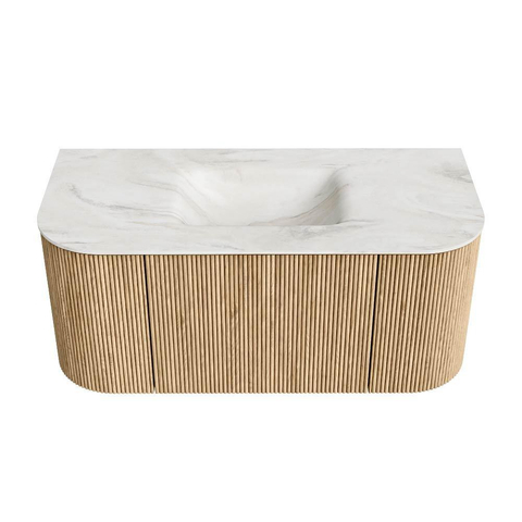 Het ultieme badmeubel dat je badkamer transformeert tot een oase van verfijning. Met zijn halfronde, verticale stroken van massief eiken, verkrijgbaar in de kleuren Oak en Walnut, straalt KURVE vakmanschap uit in elk detail. De zachte rondingen en slim ontworpen deurtjes, elk 40cm hoog, nodigen uit tot gebruik, terwijl de ruimte binnenin optimaal benut wordt dankzij de royale lade van dezelfde hoogte.