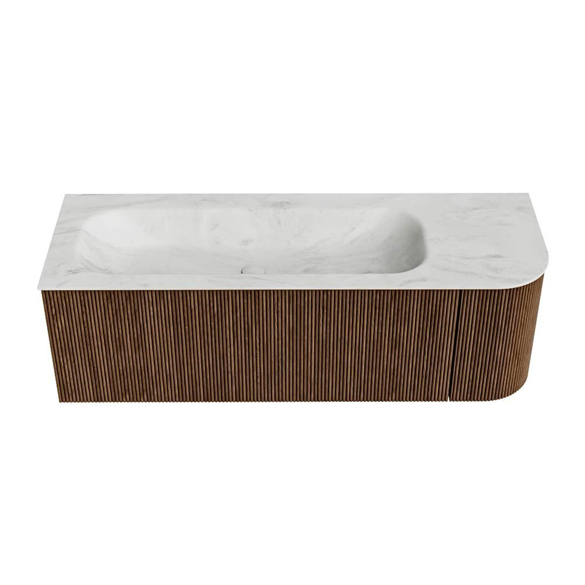 MONDIAZ KURVE-DLUX 135cm badmeubel met module 25 R kleur Walnut met 1 lade en 1 deur. Wastafel BIG MEDIUM links 1 kraangat kleur Opalo.