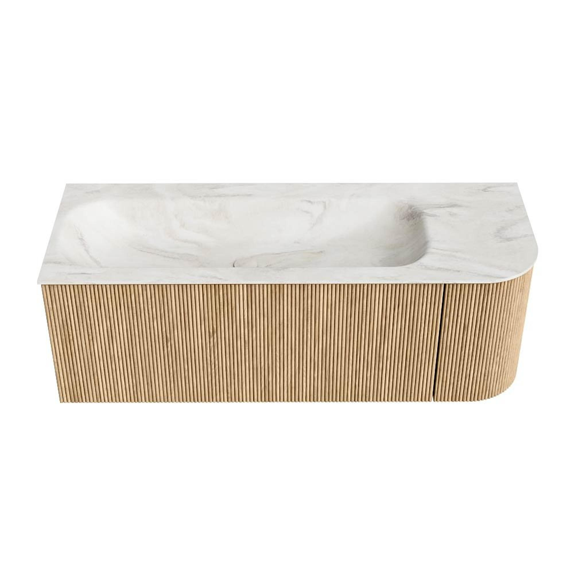 MONDIAZ KURVE-DLUX 125cm badmeubel met module 25 R kleur Oak met 1 lade en 1 deur. Wastafel BIG MEDIUM links 1 kraangat kleur Ostra.